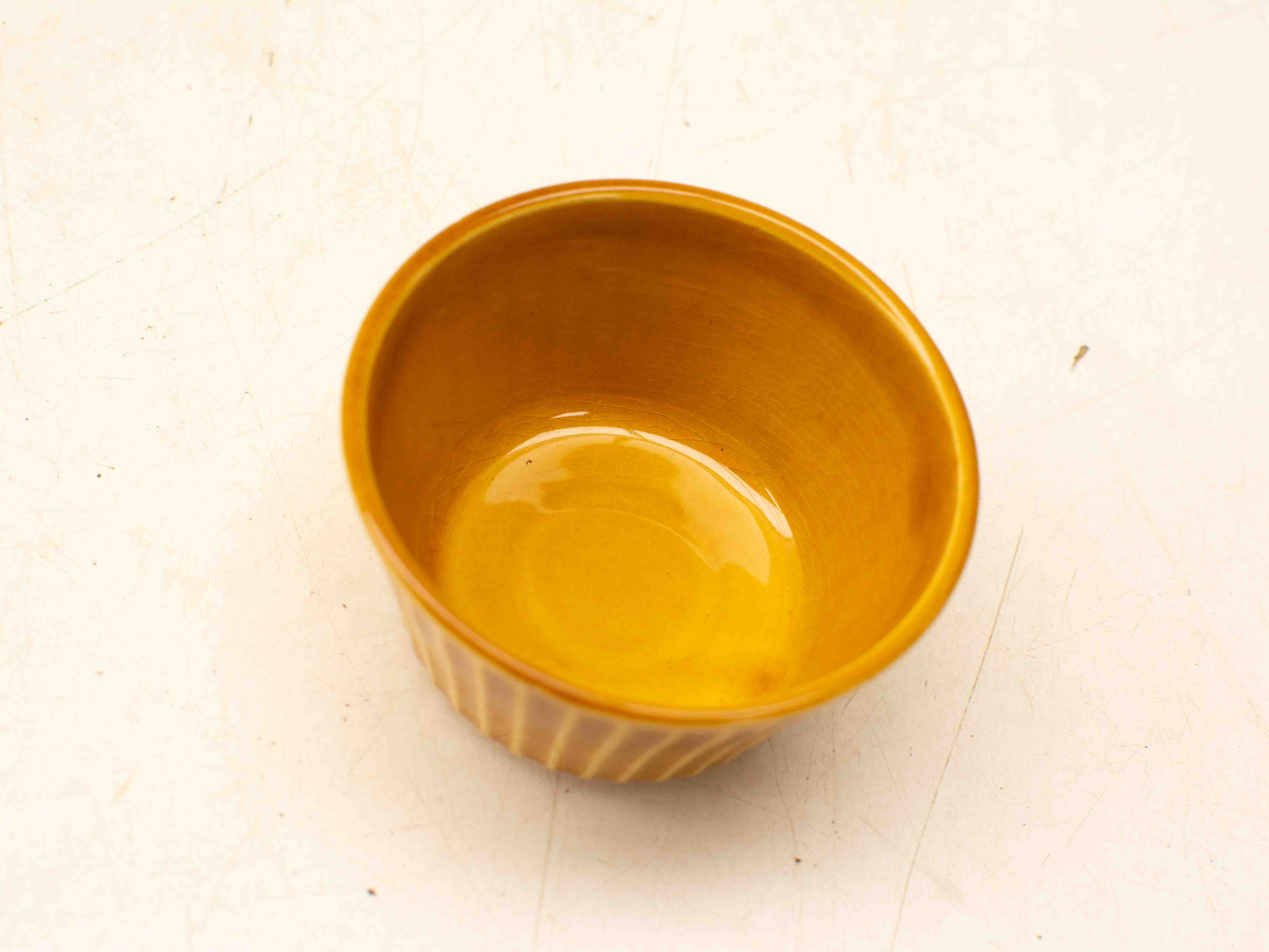 1 schaaltje heeft veel krassen op de bodem diameter bovenkant opening 8 cm hoog 4,5 de andere schaaltjes zien er nog goed uit