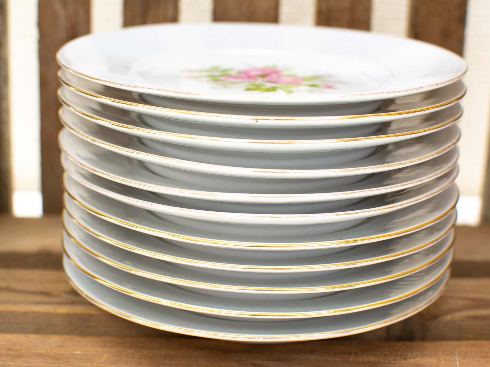 ze hebben slijtage aan het geverfde randje de bordjes zien er verder nog goed uit diameter van het bord 19 cm