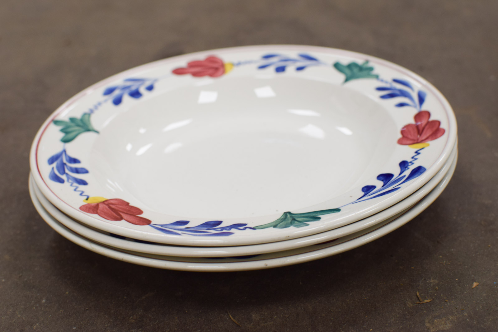 ze hebben verschillende merkjes de borden hebben krassen en vlekken de 8 diepe borden gemeten diameter bovenkant 24 cm hoog 3,5 cm 1 bordje diameter 21 cm hoog 2,5 cm 1 schaaltje diameter 17 cm hoog 2,5 cm 1 kleine schaaltje diameter 14,5 cm hoog 2 cm