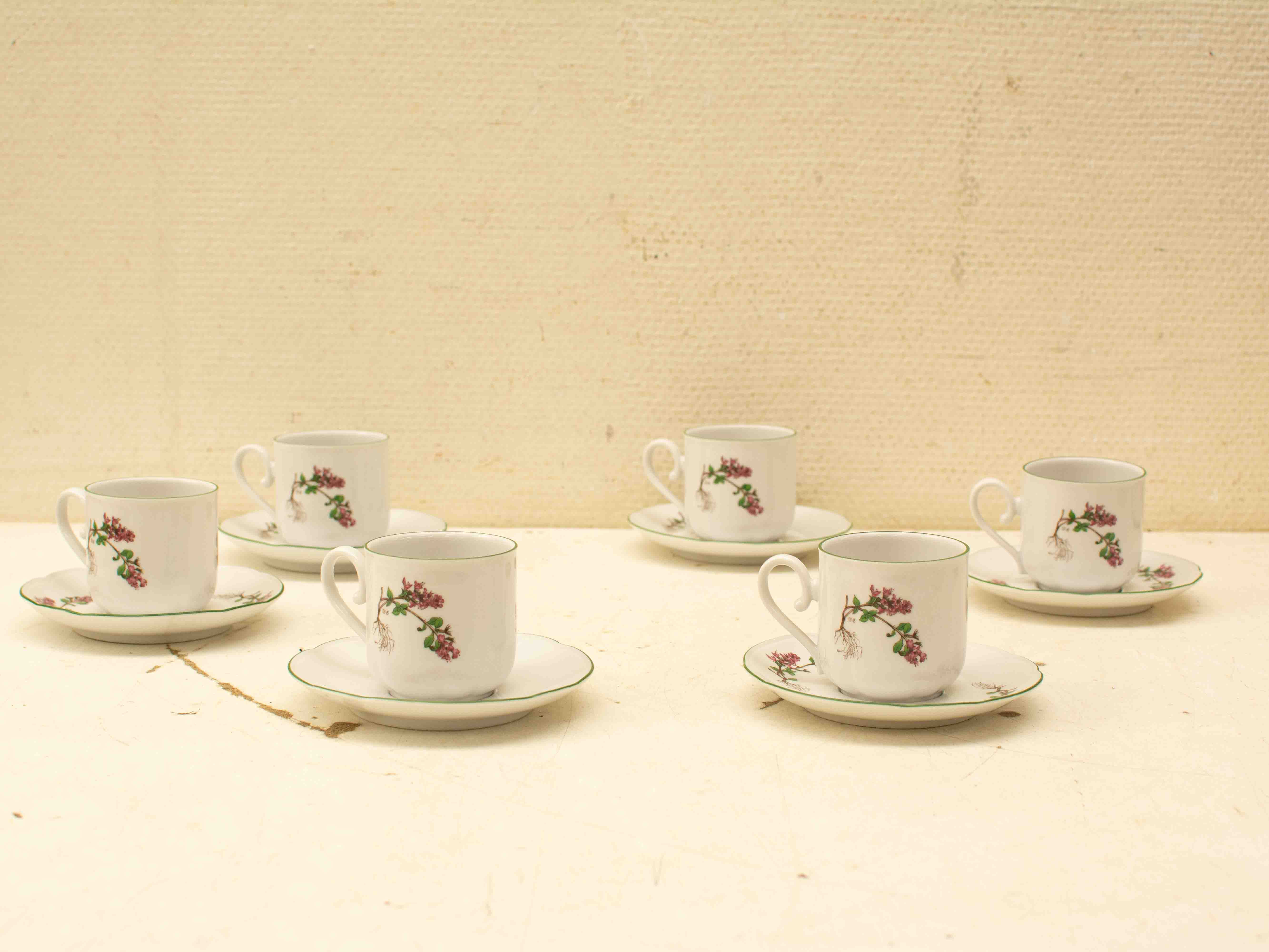 diameter bovenkant opening van het kopje 6,5 cm hoog 6,5 cm diameter van het schaaltje 13 cm het servies ziet er nog goed uit
