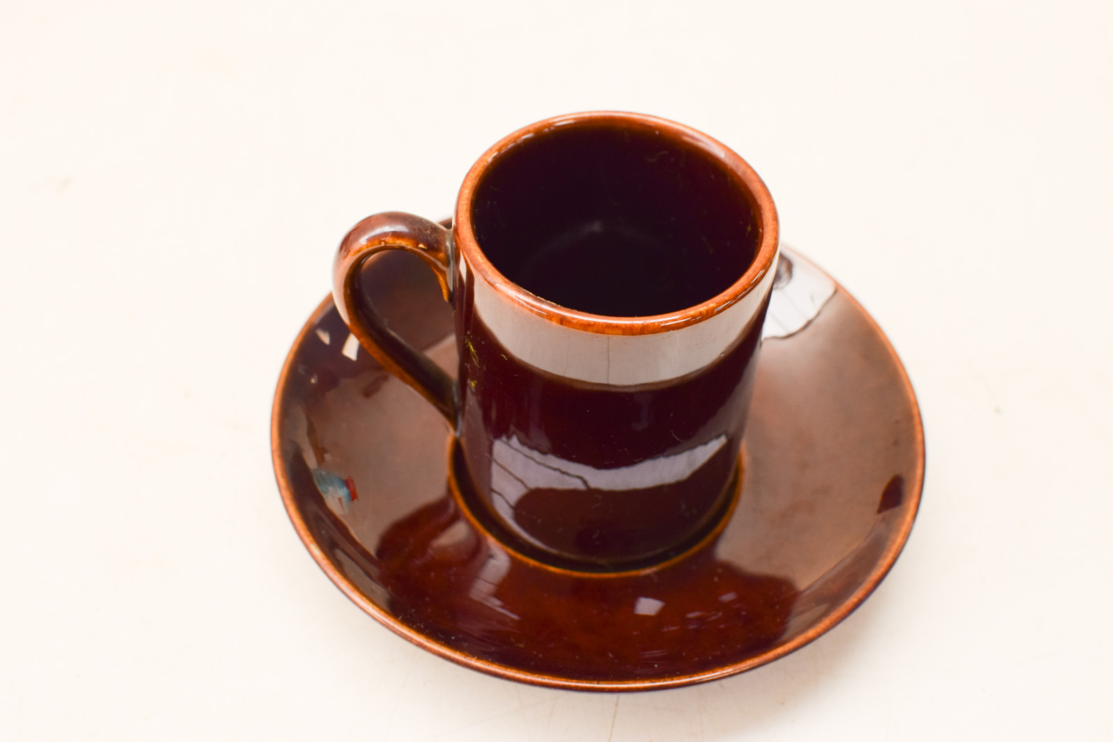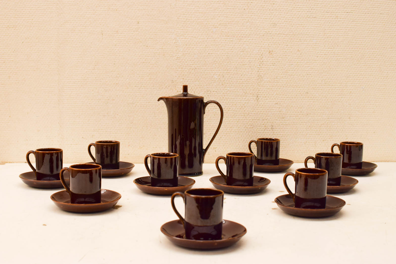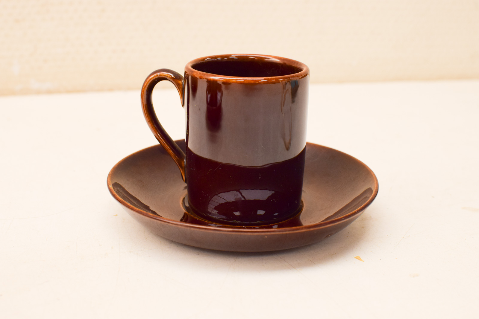het kopje gemeten diameter bovenkant opening 5 cm hoog 6,5 cm diameter van het schaaltje 12 cm koffiepot gemeten van oor tot tuit 13 cm gemeten zonder deksel hoog 17 cm