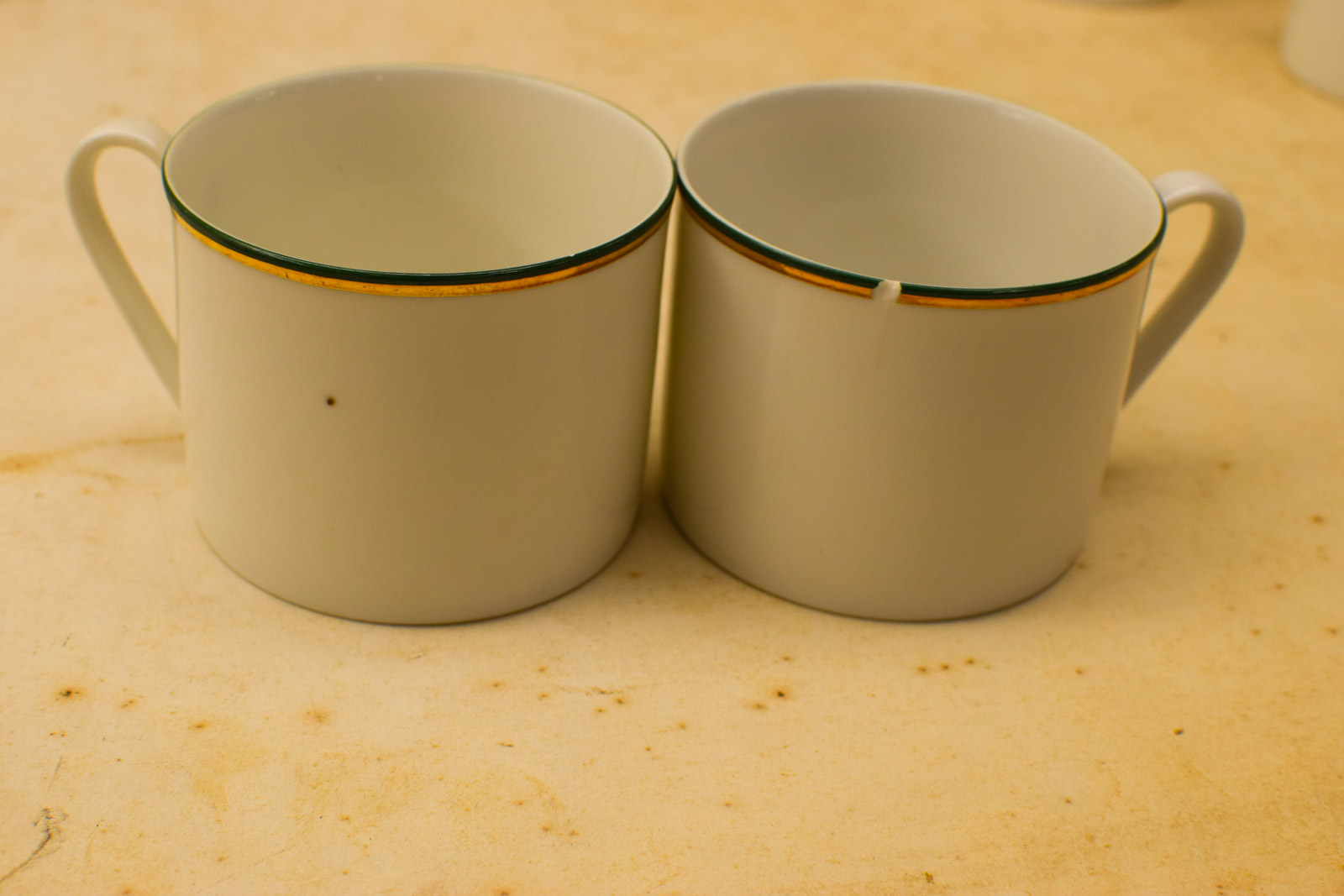 Dit type porseleinen servies past goed in een klassieke of retro huishouding en kan gebruikt worden voor thee of als decorstuk. De beschadigingen maken het geschikt voor iemand die niet bang is voor een gebruikte vondst met karakter.