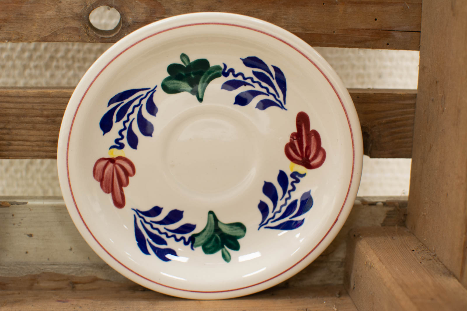 diameter van het schoteltje 14,5 cm de schoteltjes hebben een paar vlekjes en krasjes