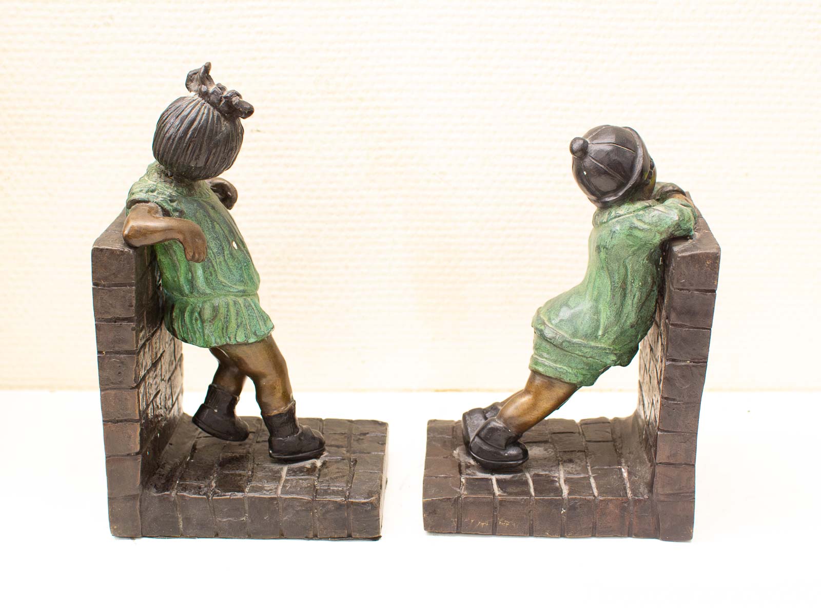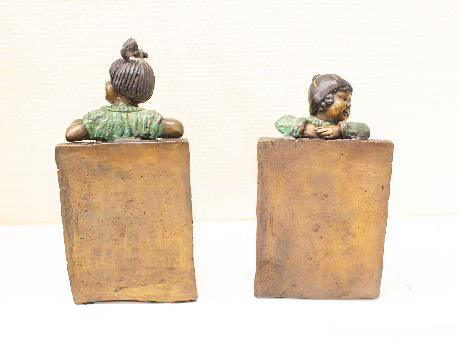 het meisje mist een klein stukje in het jurje zie foto en mist wat verf in het haar hoogte van het meisje 23 cm hoogte van het jongetje 21 cm het jongetje mist ook enkele stukjes beiden missen stukjes verf