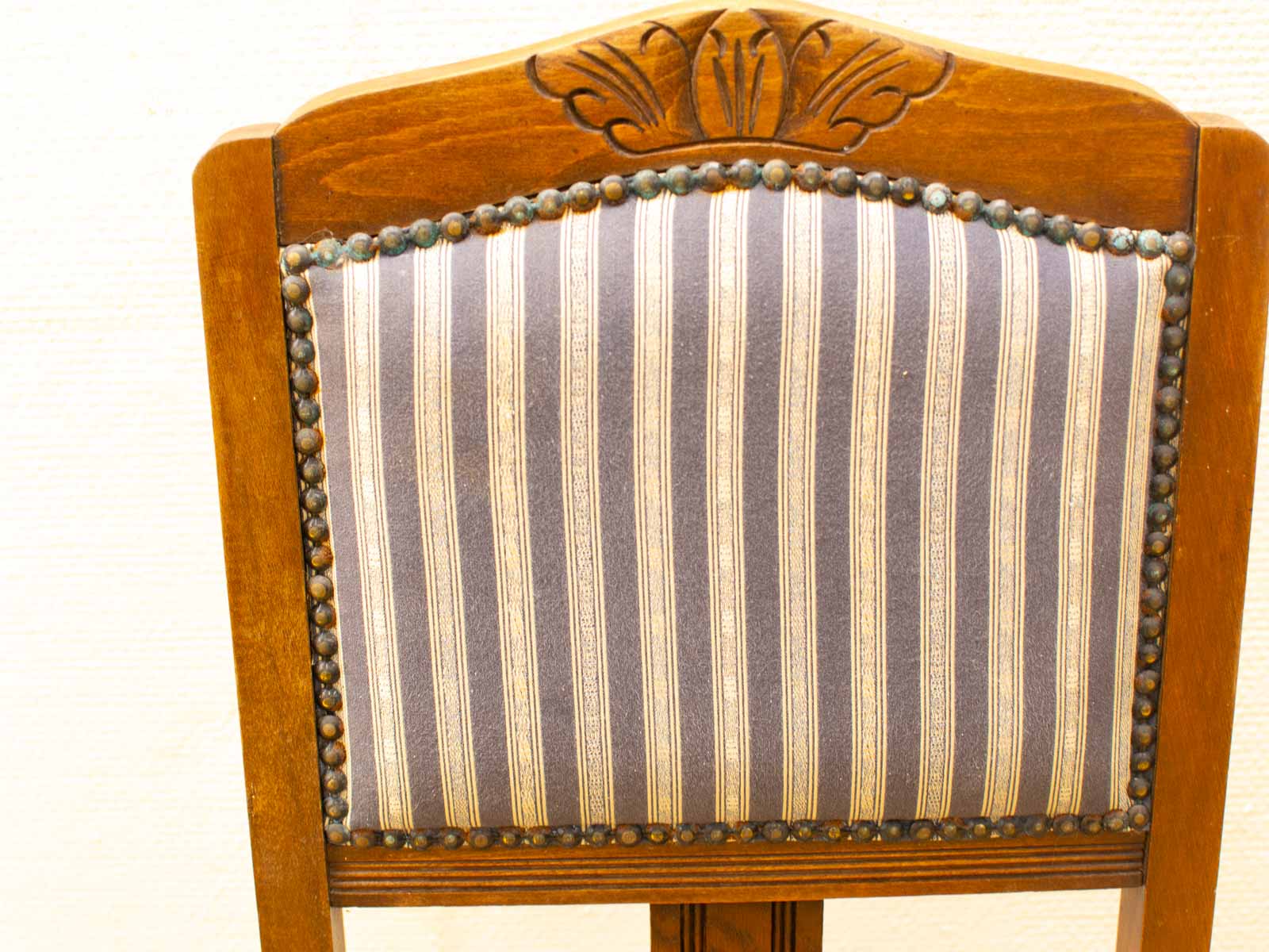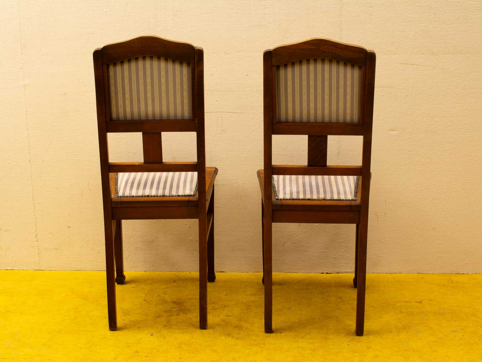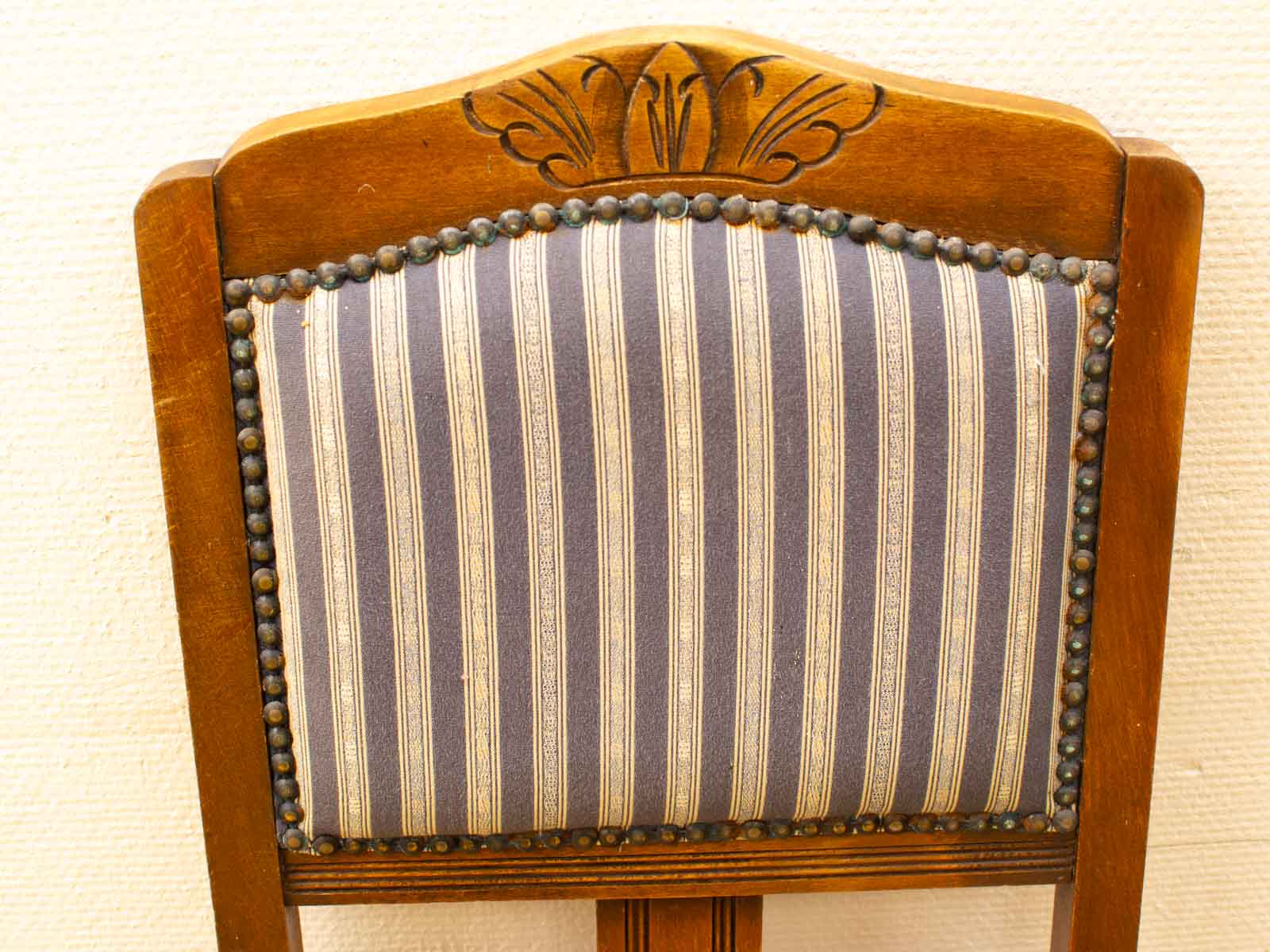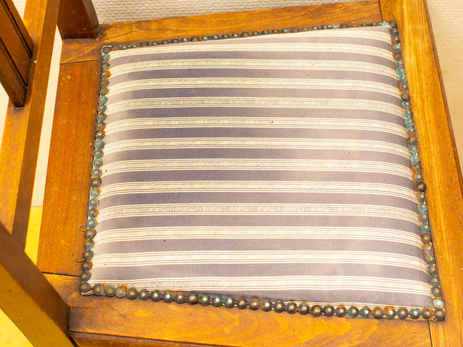 de stoelen hebben vlekjes op de stof roest op de drukspijkers de stoelen hebben gebruiksvoorwerpen