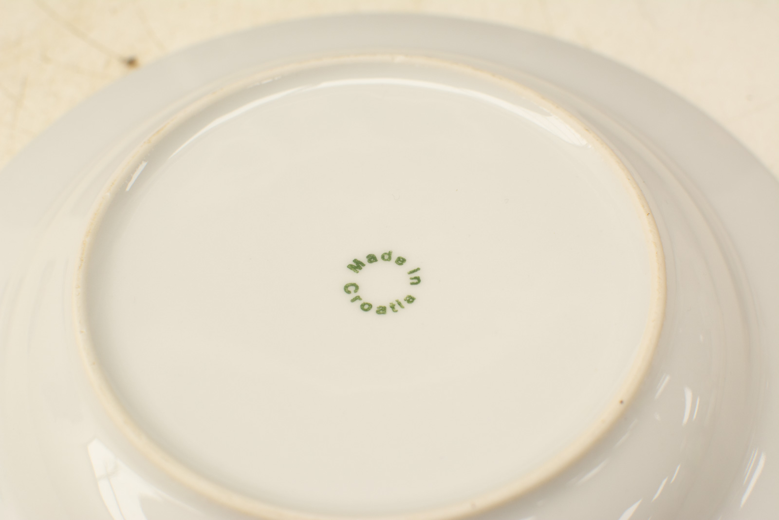 de borden hebben 2 blauwe randjes de borden hebben wat krasjes maar zien er verder nog goed uit hoog 3,5 cm diameter van het bord 21,5 cm