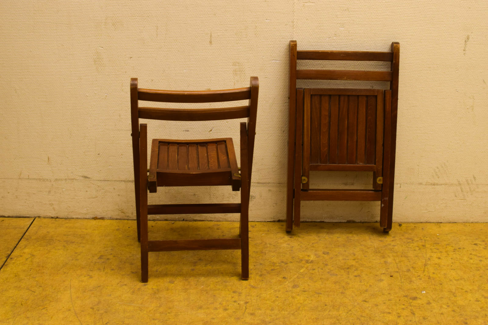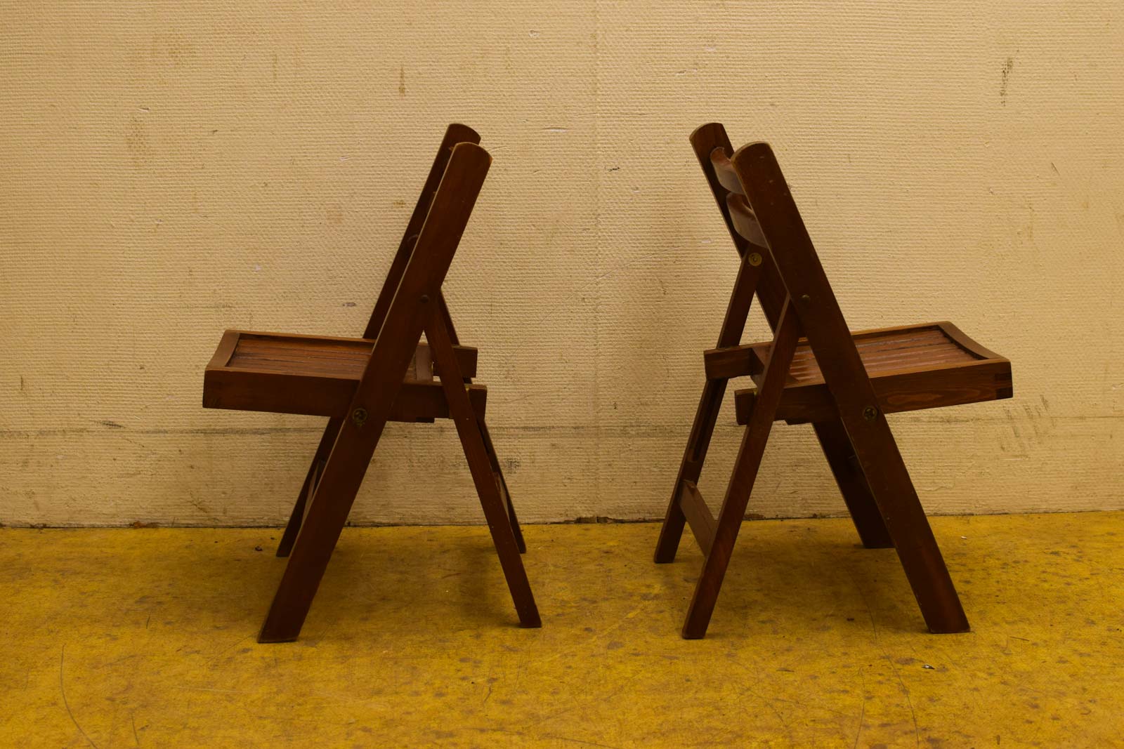 de stoeltjes zijn gebruikt en hebben gebruikssporen maar zijn heel zitvlak gemeten breed 24 cm diepte 25 cm