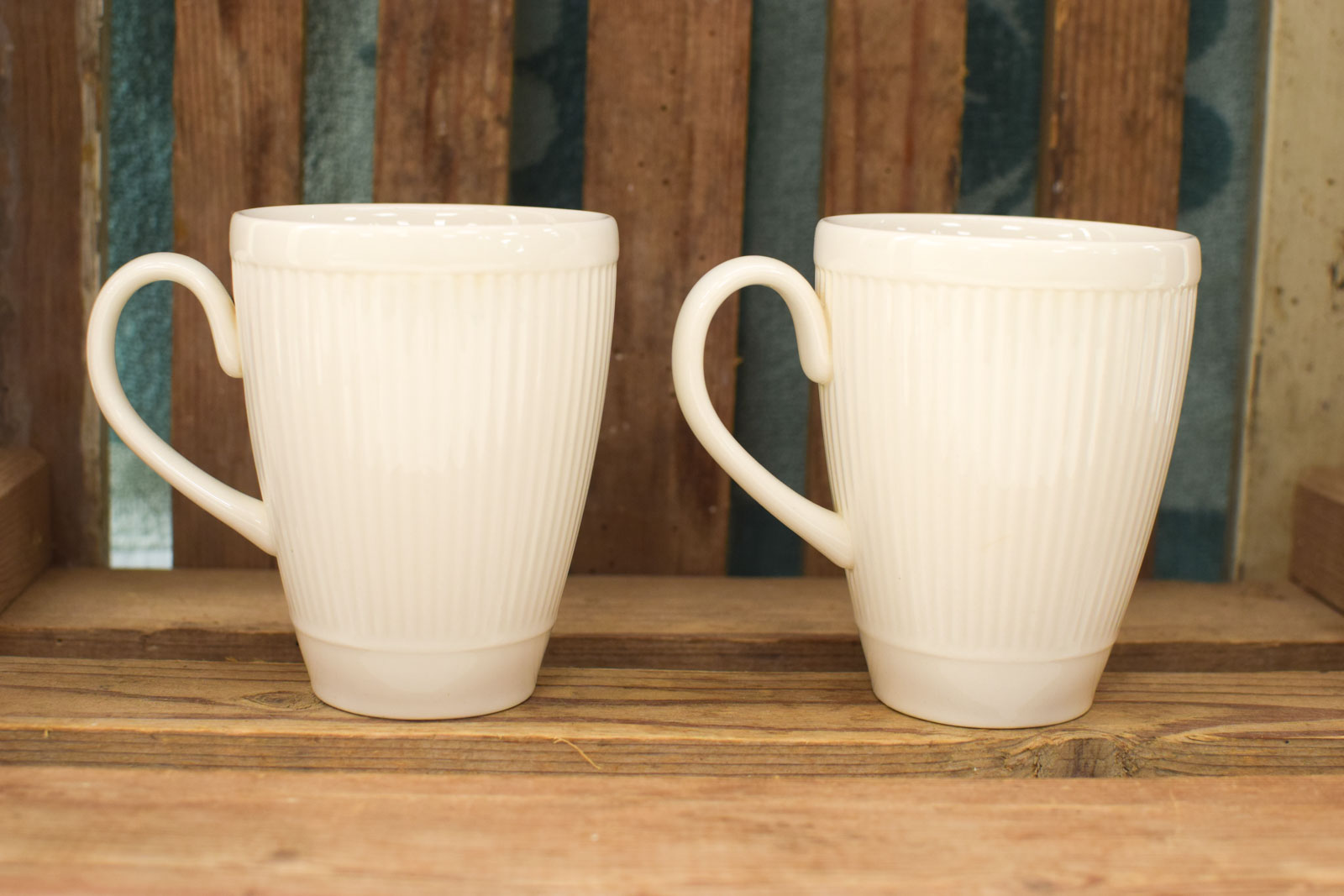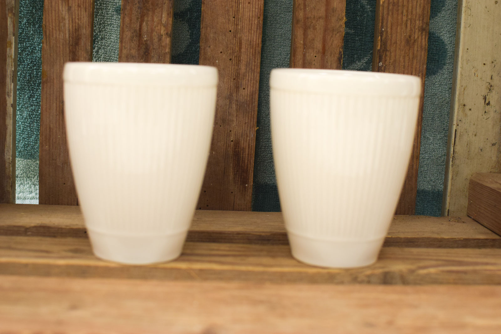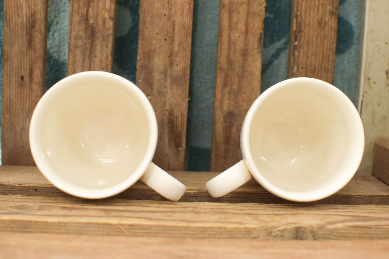 ze hebben wat krasjes en lichte verkleuring aan de binnenkant ze zien er verder nog goed uit diameter bovenkant van het kopje 7,5 cm hoog 10 cm