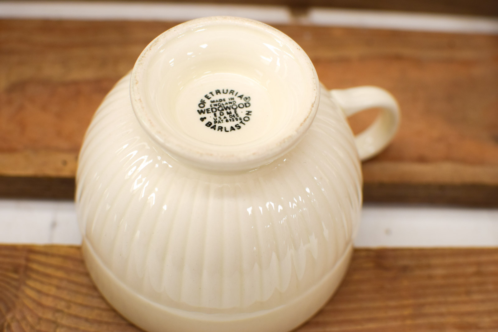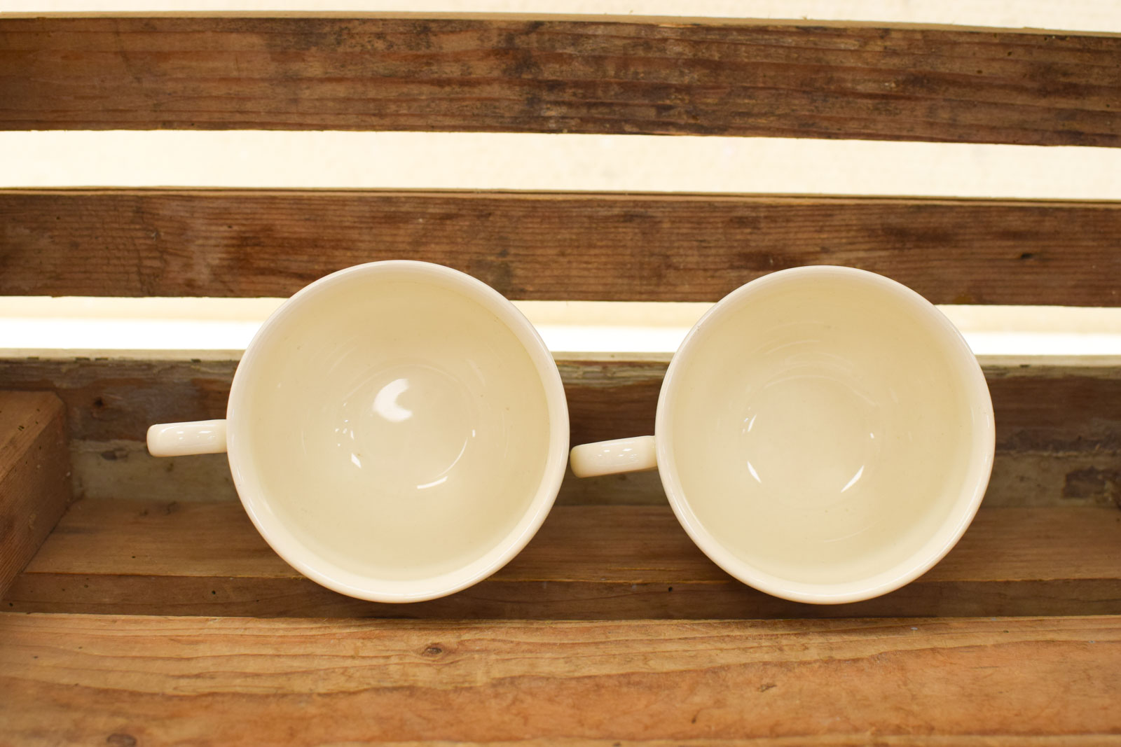 Dit zijn twee originele Wedgwood porseleinen kopjes met het kenmerkende reliëfdessin dat Wedgwood bekend maakte. De kopjes zijn van cremekleurig porselein en hebben elk een voetje, handvat en een nette afwerking. Beide exemplaren zijn identiek.