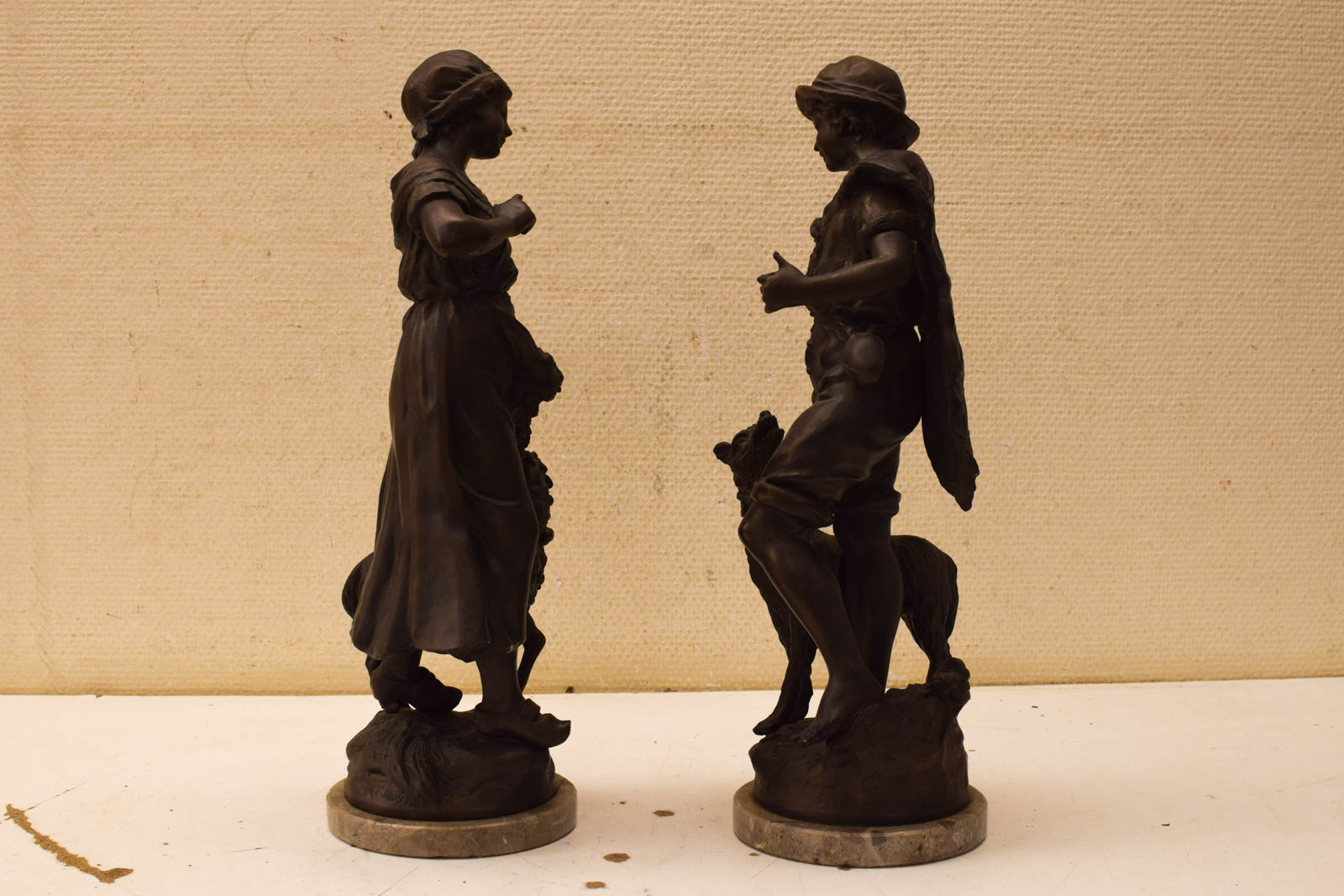 de beelden hebben gebruikssporen maar zien er verder nog redelijk uit ze zijn allebei ongeveer 45 cm hoog