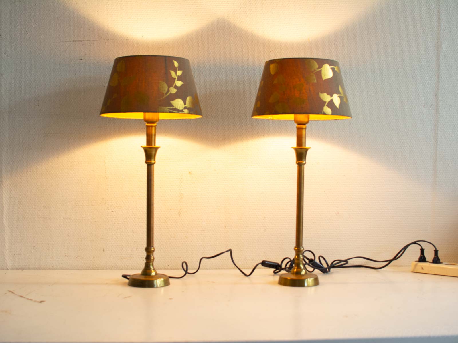 de lampenkappen zijn van de binnenkant plastic buiten kant stof de lamp is van kleur bruin/goud