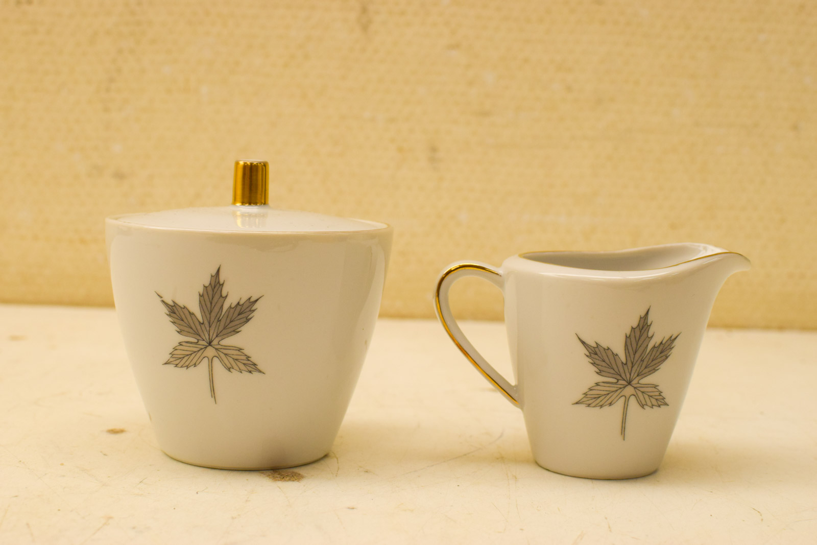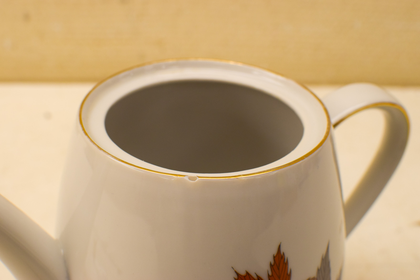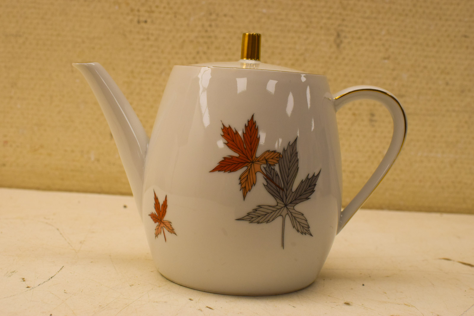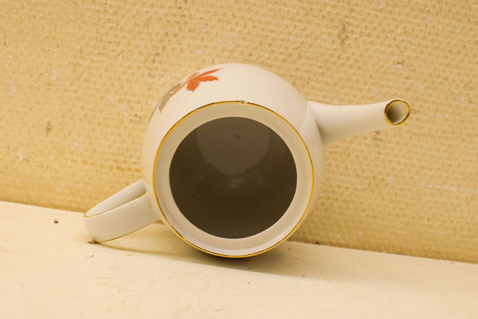 het kopje gemeten diameter bovenkant opening 8 cm hoog 6 cm diameter van het schaaltje 14 cm suikerpot gemeten diameter bovenkant 8,5 cm gemeten zonder deksel hoog 7 cm melkkannetje gemeten van oor met tuit 9,5 cm hoog 6,5 cm de theepot gemeten van tuit met oor 20 cm hoog 13 cm de theepot mist een stukje op de rand zie foto het servies heeft slijtage op het goudkleurig geverfde randje