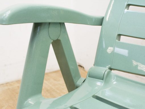 Een kunststoffen inklapbare tuinstoel in nette staat. Armeuninghoote is 62 cm.