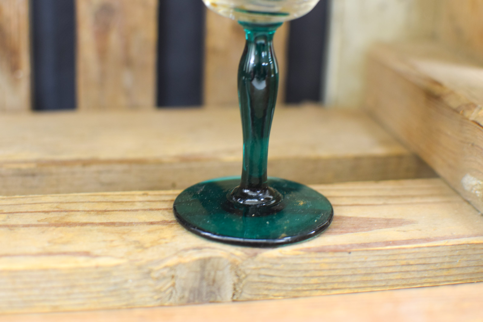 Diameter bovenkant opening 5,5 cm hoog 10,5 cm het glas ziet er nog goed uit