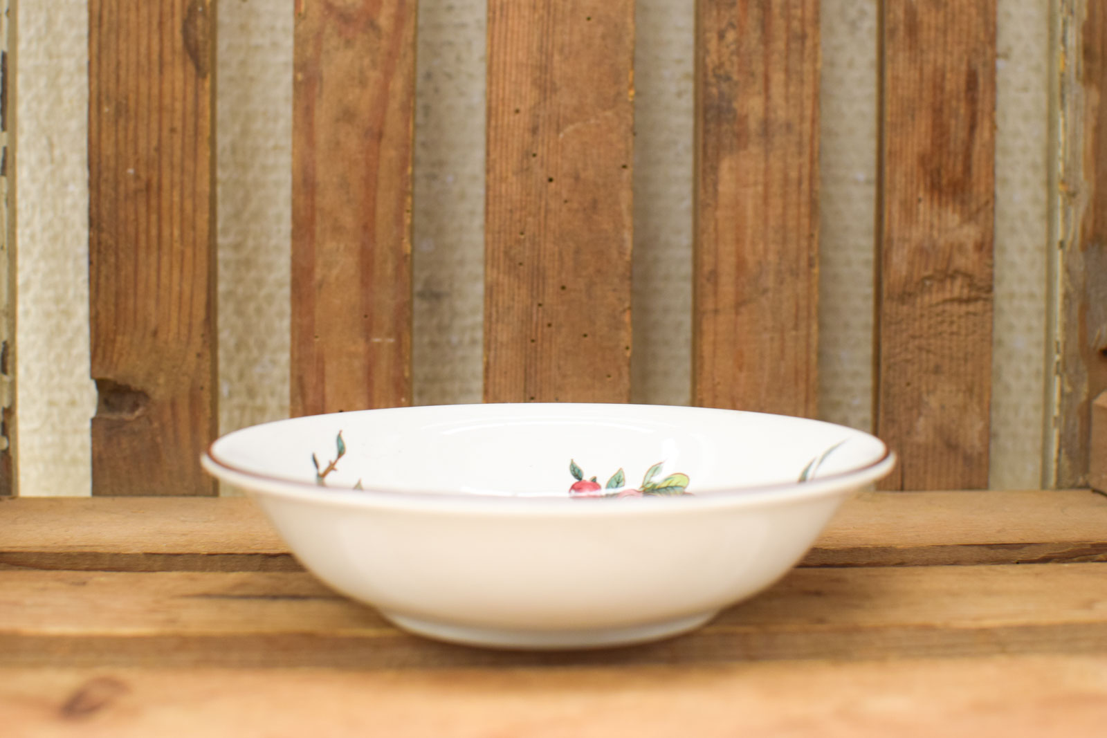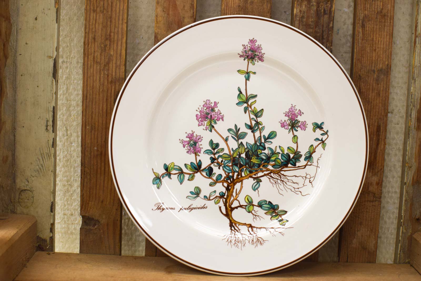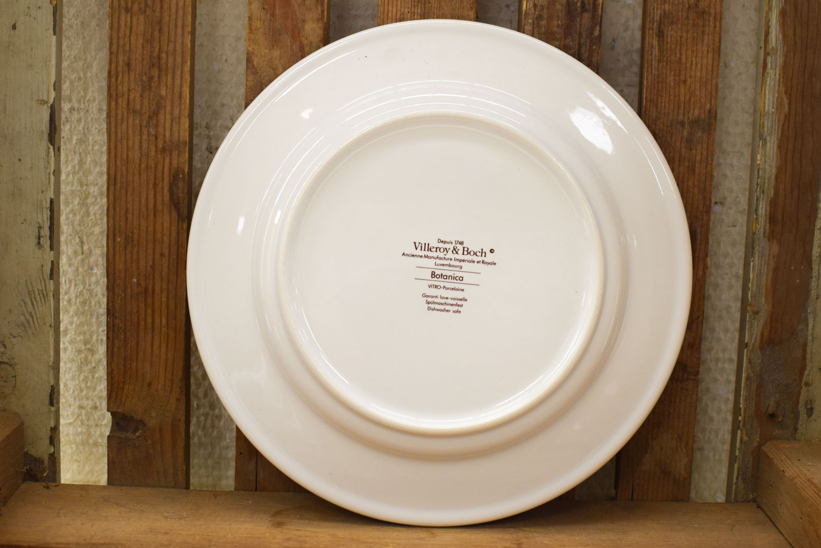 Dit zijn drie stuks uit de Villeroy & Boch Botanica collectie: één diep schaaltje en twee platte bordjes. De Botanica lijn van Villeroy & Boch staat bekend om zijn gedetailleerde, handgeschilderde botanische illustraties met wortels en plantmotieven op witte ondergrond, afgewerkt met een bruine rand.