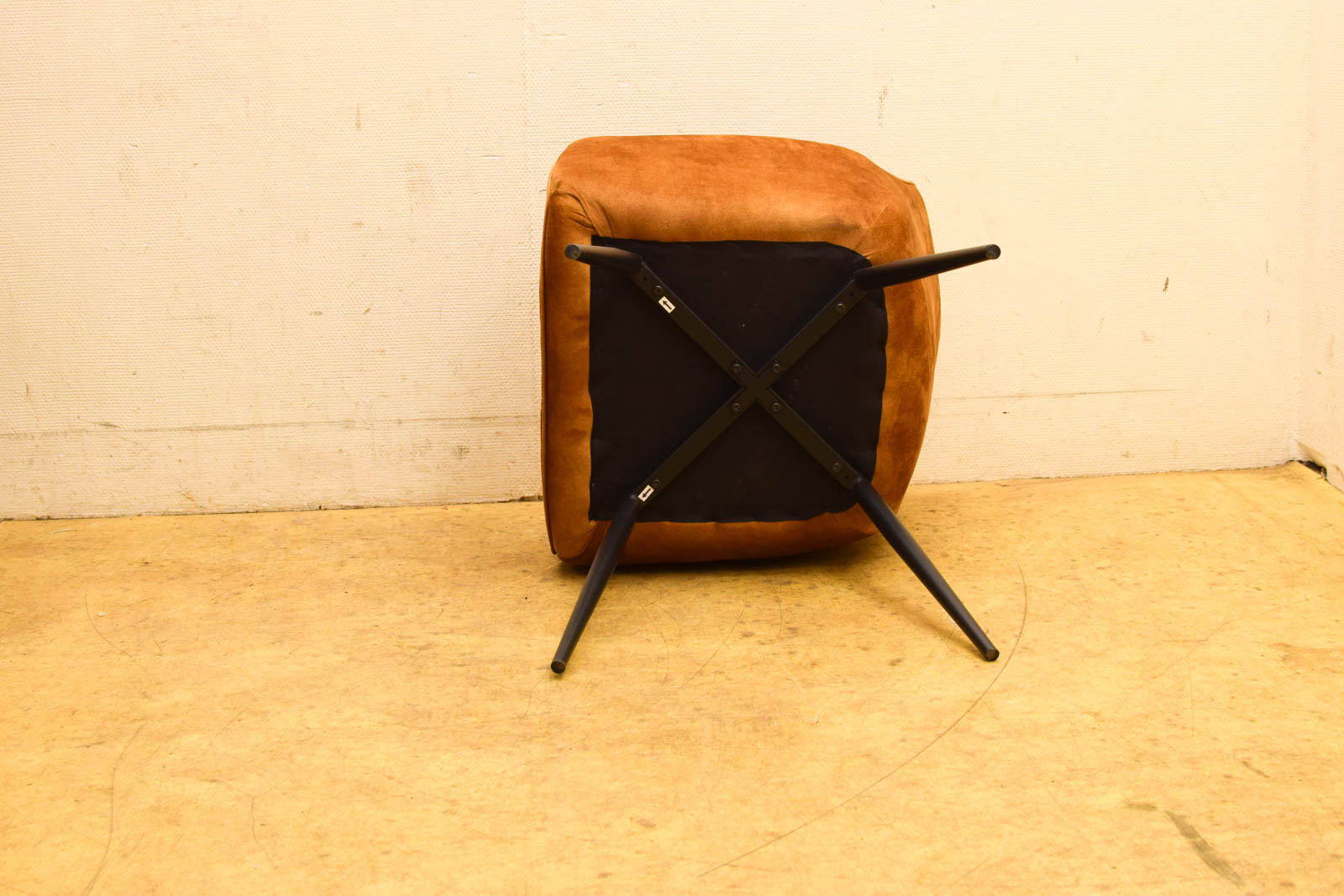 de eetkamerstoel is van stof kleur bruin/geel de stoelen zien er nog netjes uit zijn nieuw staat geen merk in gemeten van leuning tot leuning 56 cm