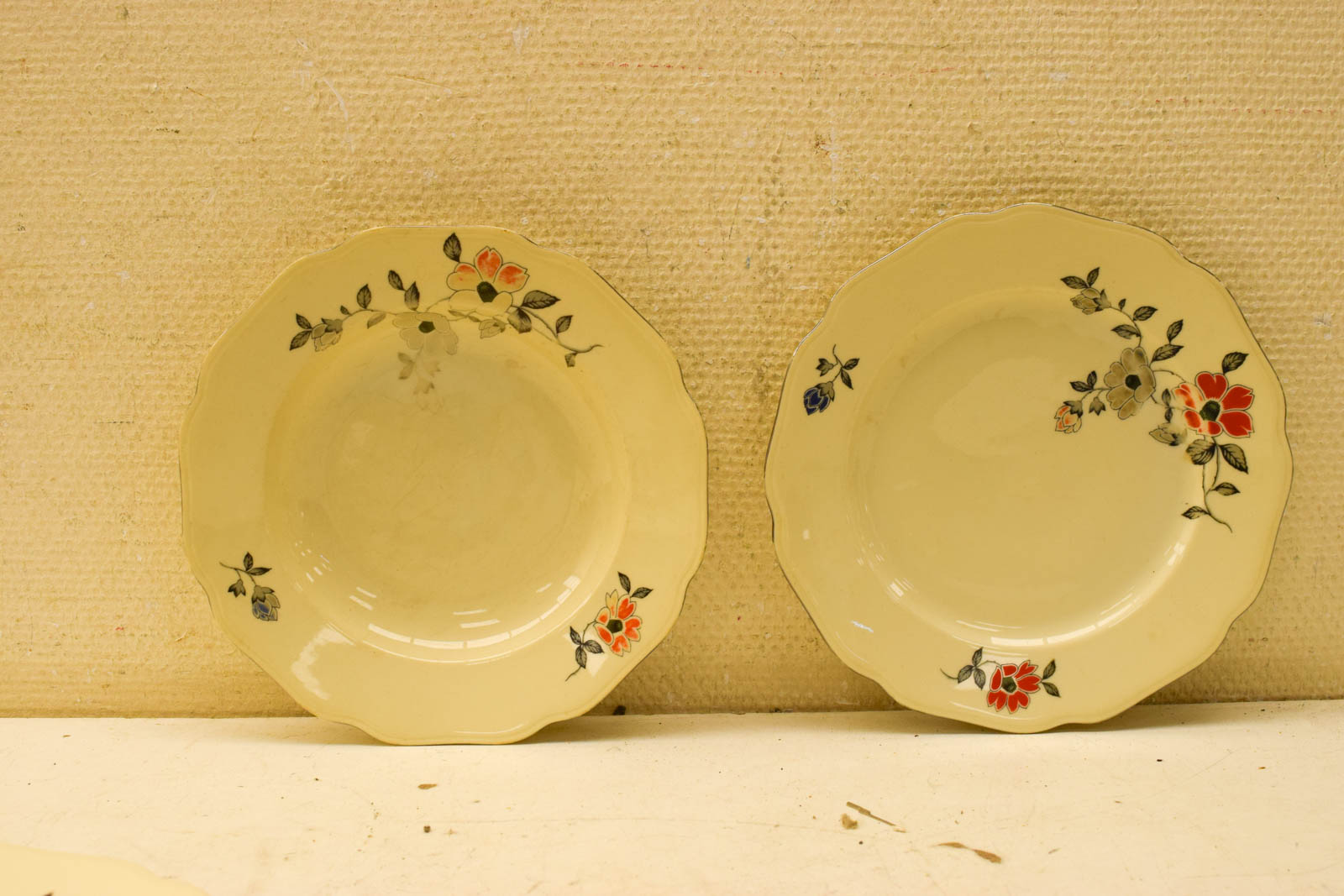 Dit type handgeschilderd servies stamt uit een periode waarin huishoudelijk porselein nog vakmanschap vereiste. De bloemendecoratief is kenmerkend voor klassieke tafelkultuurstylen en past goed in een vintage of huiselijke inrichting.