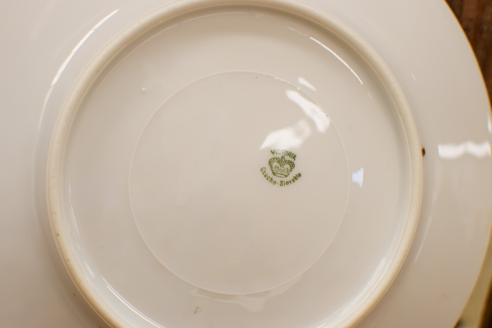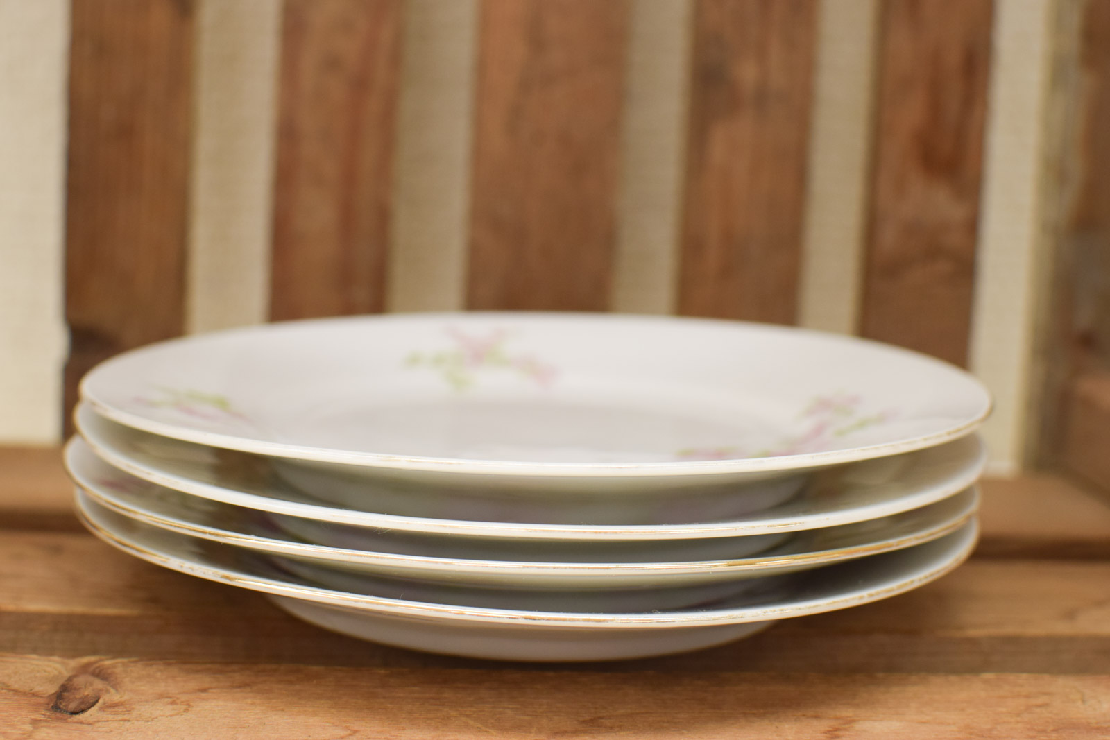 diameter van het bordje 18,5 cm de bordjes hebben krasjes en slijtage op het goudkleurige rand