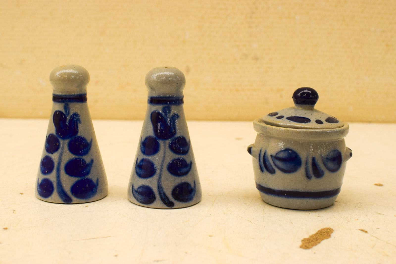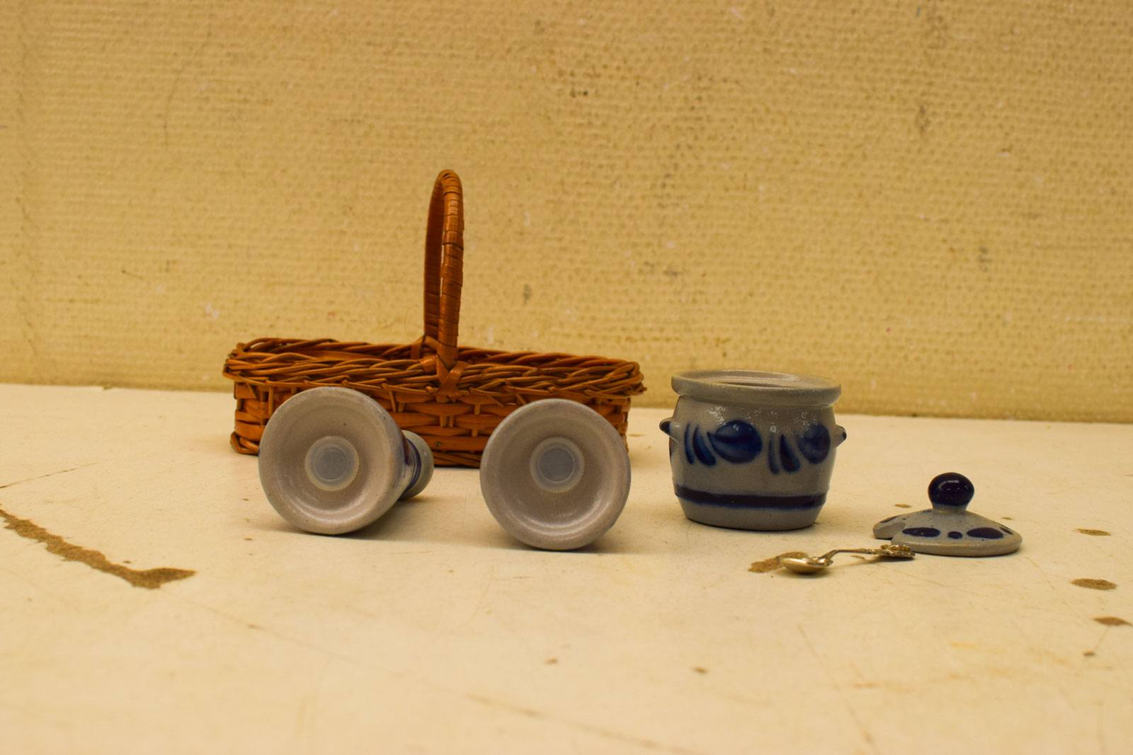 ziet er nog redelijk uit het peper potje gemeten hoog 8,5 cm suikerpot gemeten zonder deksel hoog 5 cm het mandje breed 17,5 cm diepte 8,5 cm gemeten met hendel hoog 12 cm