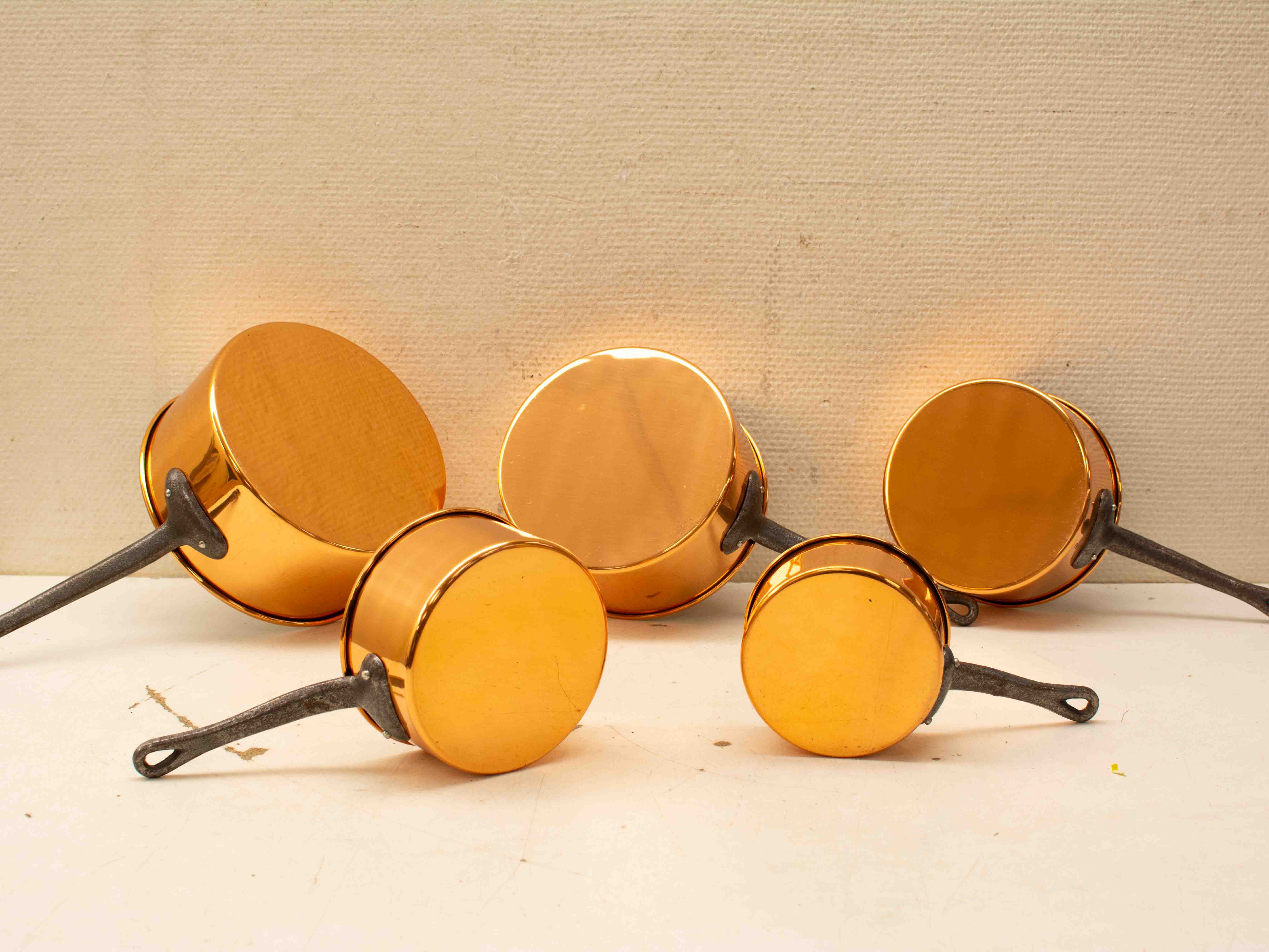 zien er alle 5 nog goed uit de kleinste steelpannetje gemeten met steel breed 23 cm de steel is van metaal alleen het ronde gedeelte gemeten diameter 12,5 cm hoog 6 cm de grootste steelpannetje gemeten met steel 39 cm alleen het ronde gedeelte gemeten diameter 20,5 hoog 10 cm de steelpannetjes zien er nog goed uit