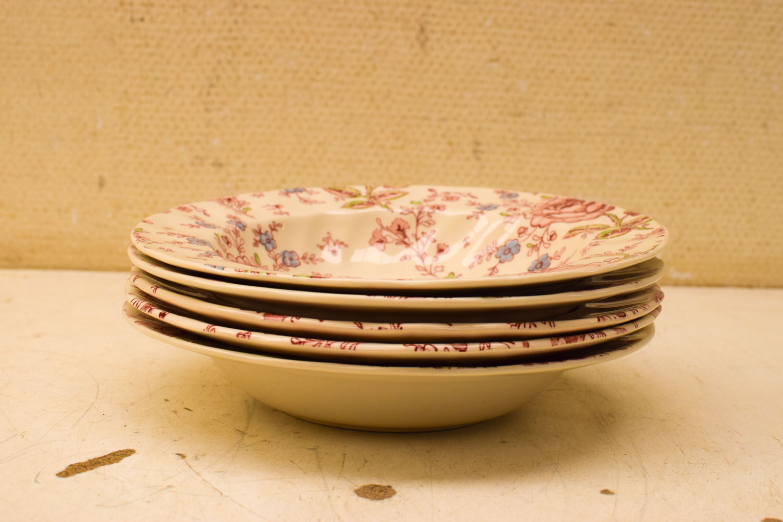 de borden hebben een brede rand van 3 cm diameter bovenkant 22 cm hoog 4 cm