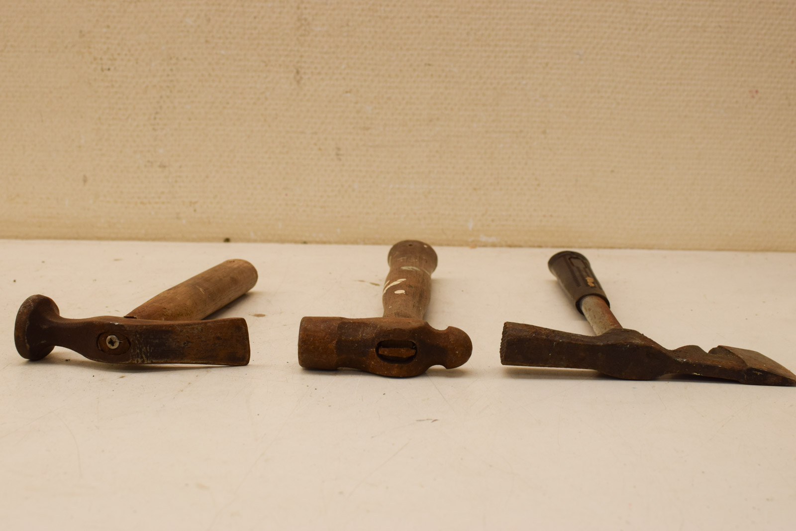alle 5 zijn gebruikt en hebben gebruikssporen en roest de grootste gemeten hoog met een stukje bijl aan de zijkant hoog 32 cm breed 17,5 cm