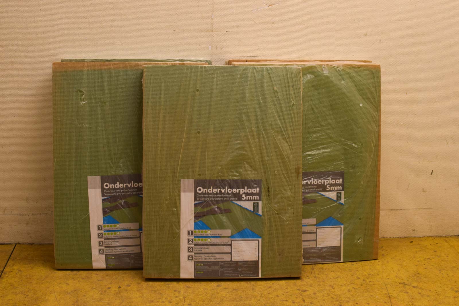 ondervloer voor parket /laminaat zijn 5 mm dik breed 59 cm hoog 79 cm er zitten in totaal 15 platen in 1 verpakking