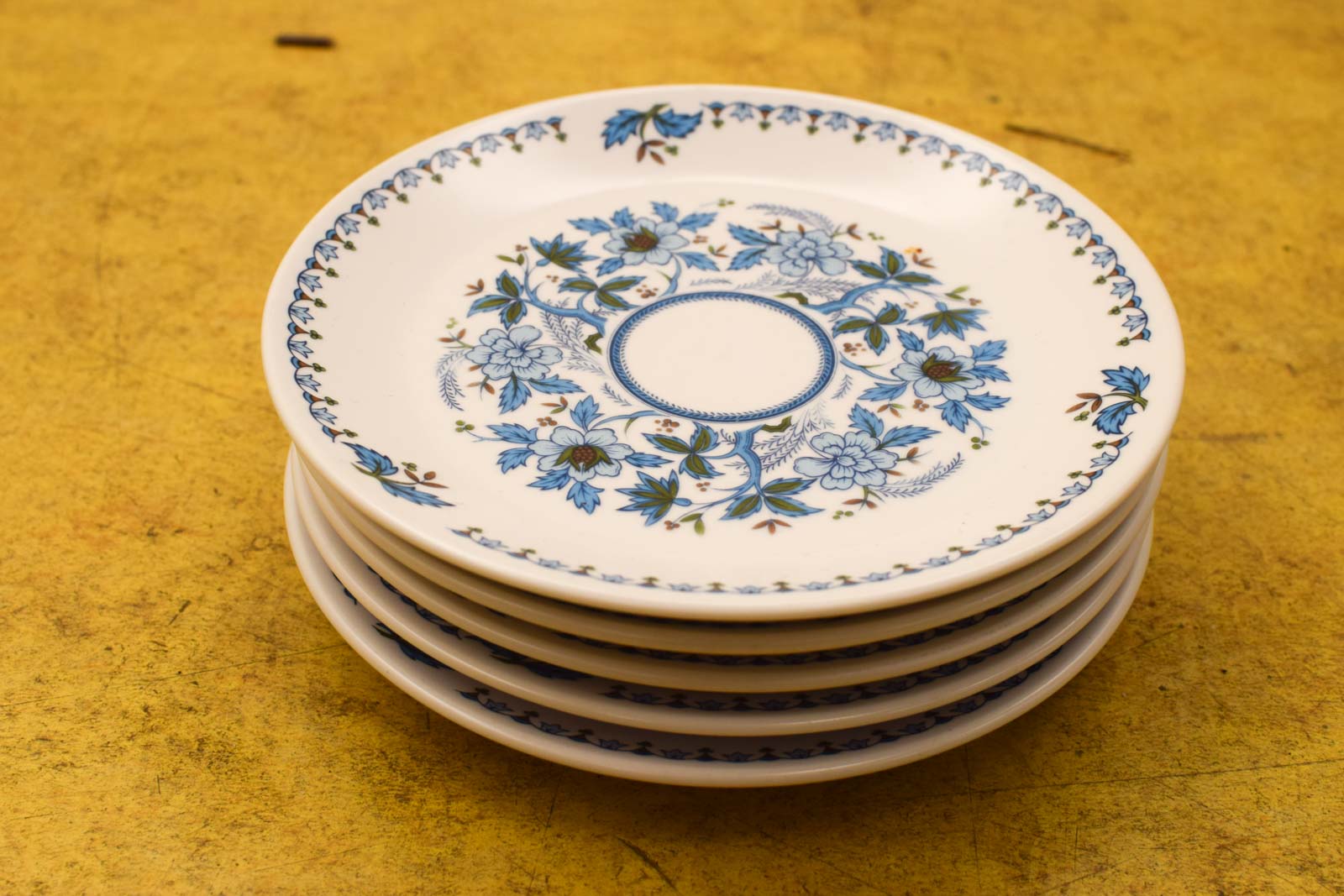 Dankzij het stevige porselein is dit servies praktisch in gebruik, terwijl het klassieke blauwe bloemendessin zorgt voor een sfeervolle en elegante uitstraling op tafel. Het patroon doet denken aan serviezen van onder andere Arcopal, Johnson Bros en Villeroy & Boch uit dezelfde periode.