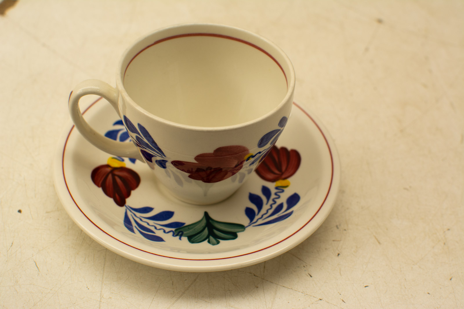 diameter bovenkant van het kopje 8 cm hoog 7 cm diameter van het schoteltje 14,5 cm bij 1 kopje zit op de bodem een bruine vlek /verkleuring