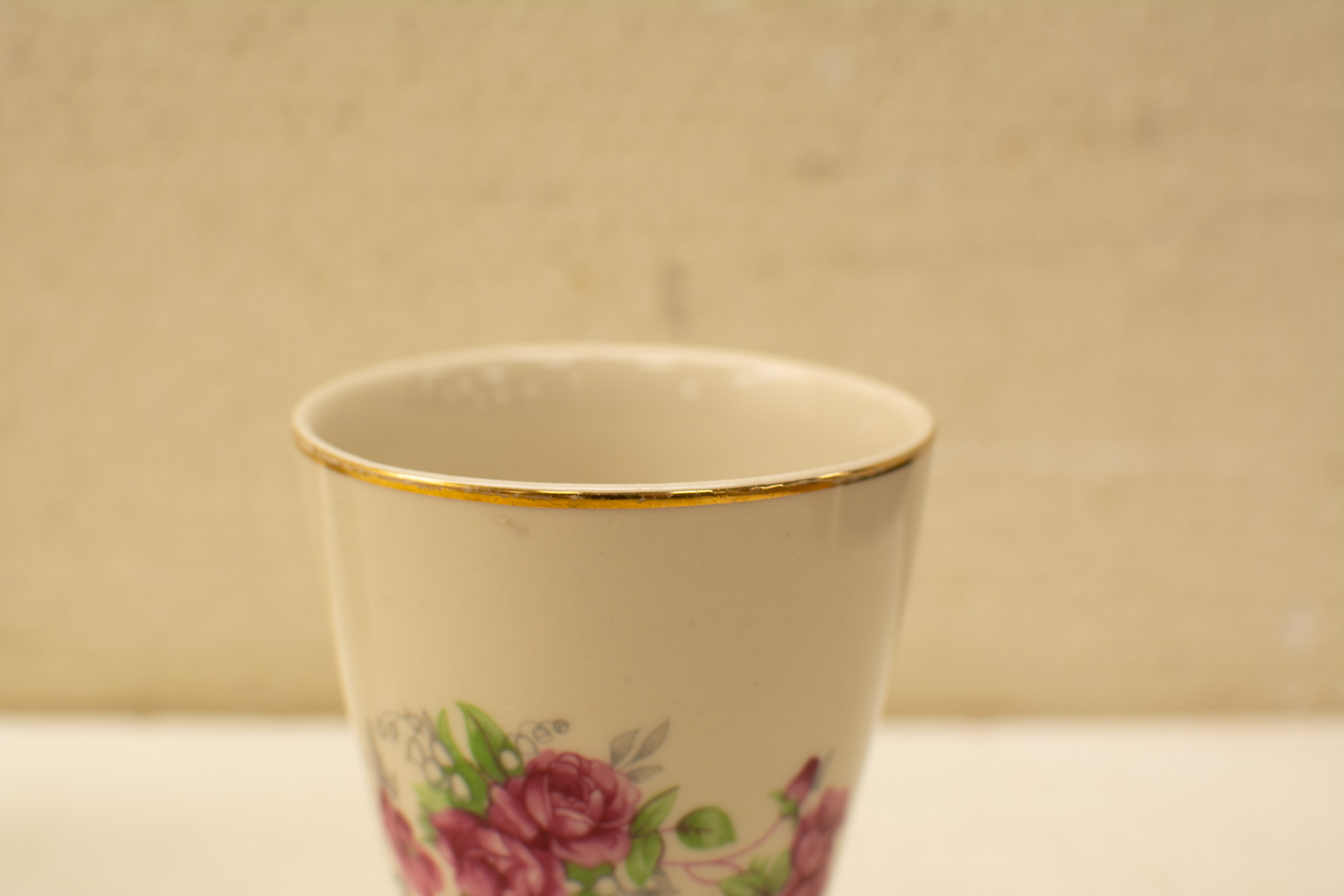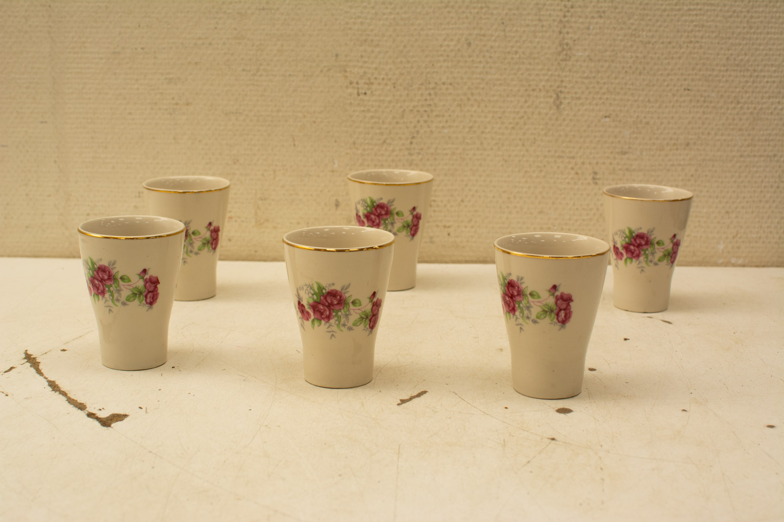 diameter bovenkant opening van de beker 7,5 cm hoog 10 cm de bekers hebben slijtage op het geverfde randje verder zien ze er nog goed uit