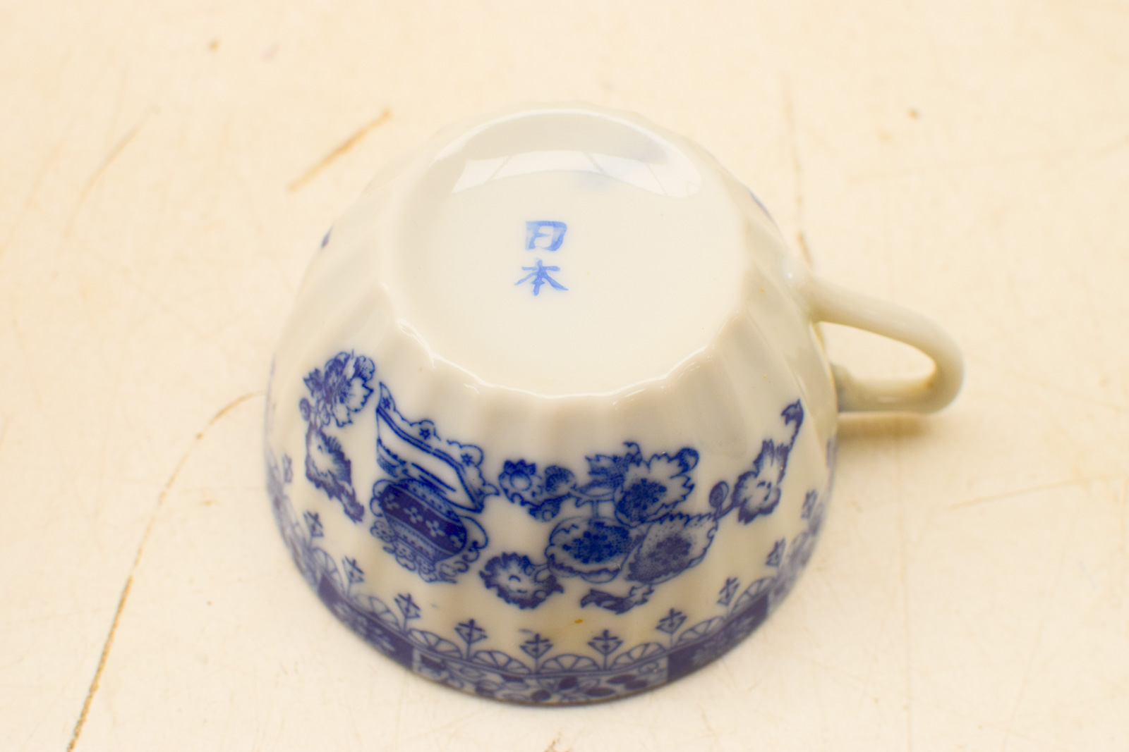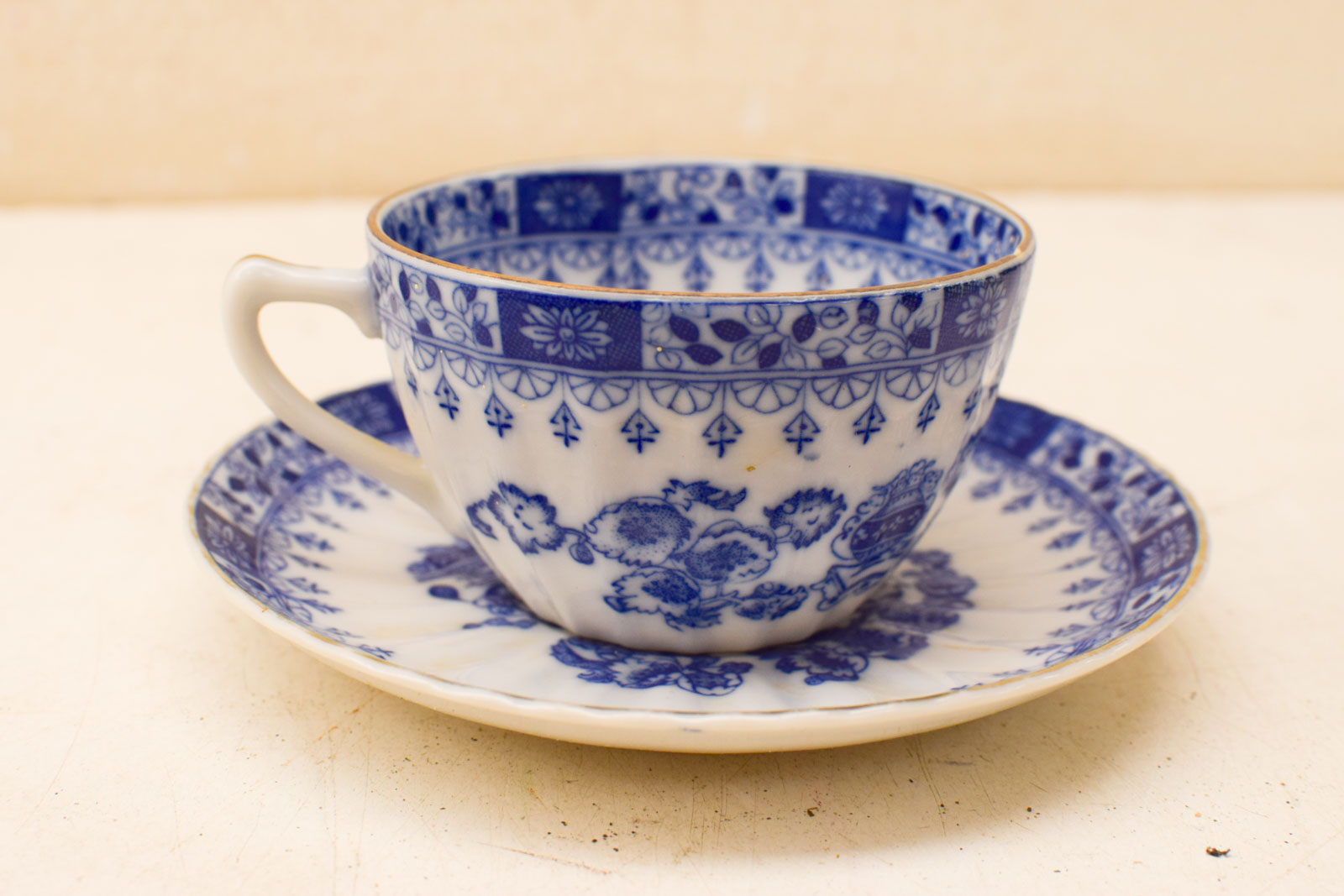 het kopje gemeten diameter bovenkant opening 8 cm hoog 5 cm diameter van het schaaltje 13 cm bij 1 kopje mist een klein stukje op de rand