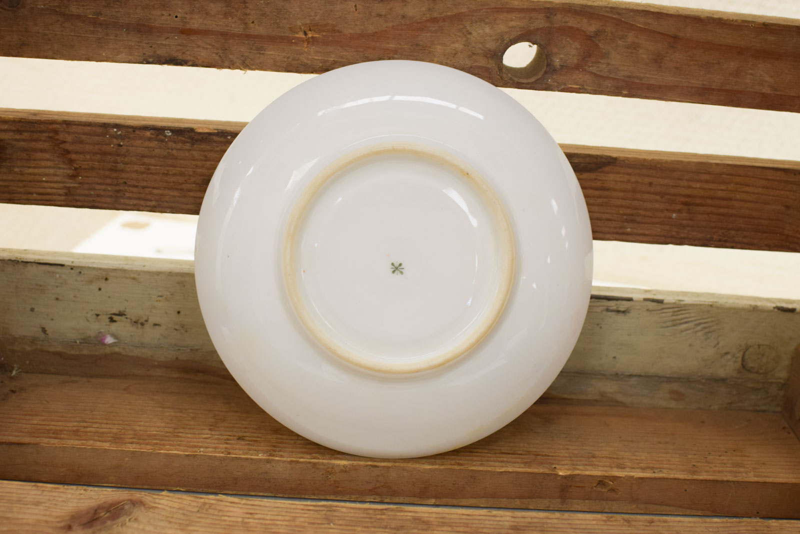 het servies heeft vlekken slijtage op het geverfde randje diameter bovenkant van het kopje 9,5 cm hoog 5,5 cm diameter van het schoteltje 14,5 cm