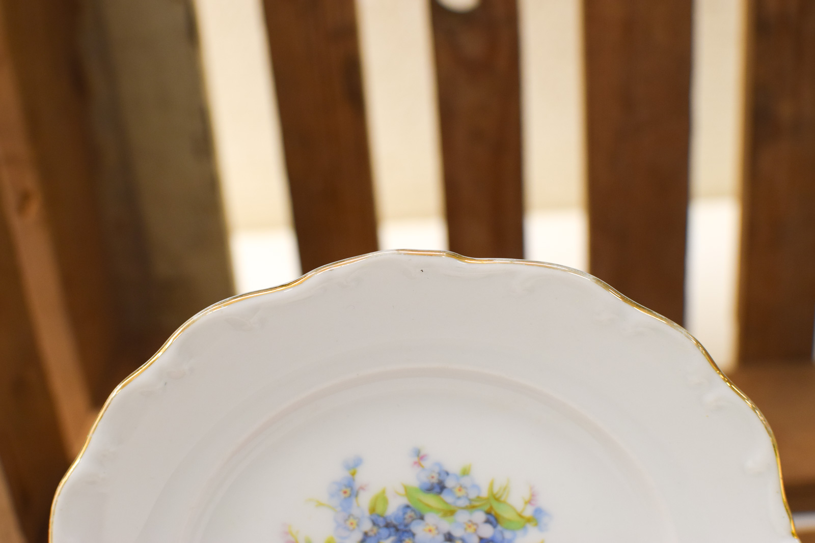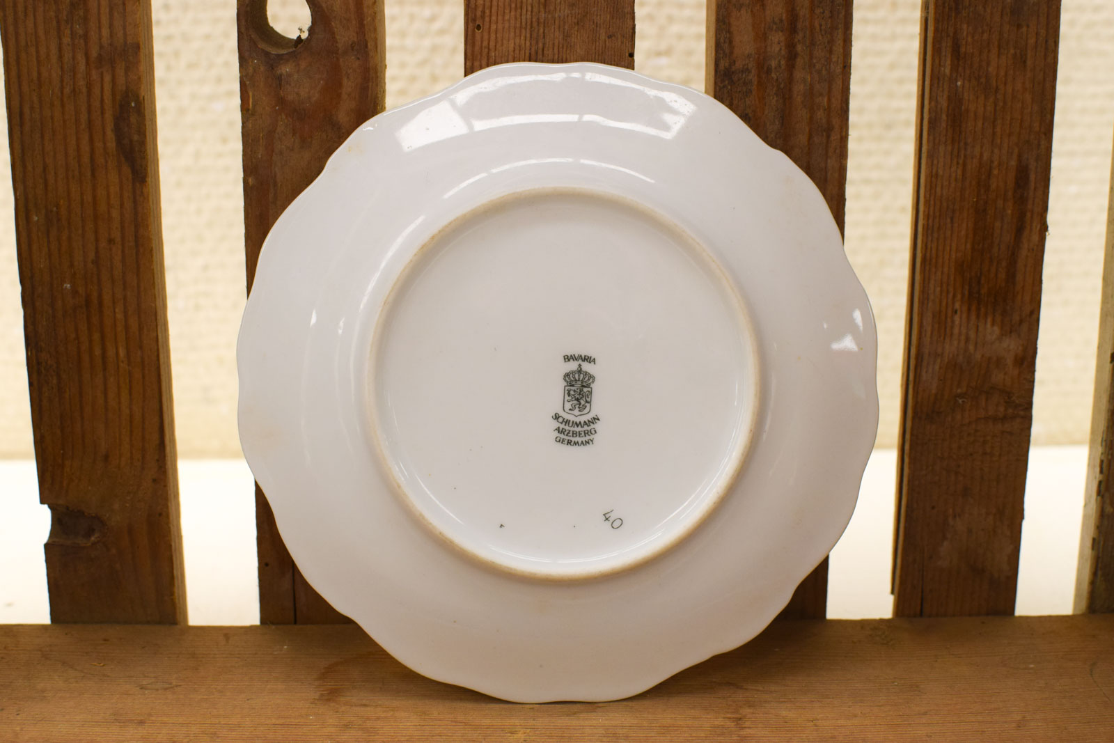 diameter van het schoteltje 15 cm se schoteltjes hebben slijtage aan het goudkleurige geverfde randjes ze hebben vlekjes en lichte krasjes