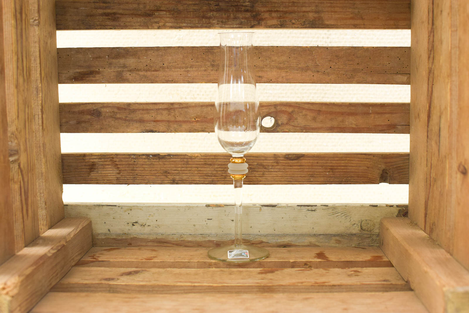 Set van 6 champagne glazen op voet met goudkleurige versiersel. Elegante glazen met een hoogte van 24 cm, perfect voor feestelijke momenten.