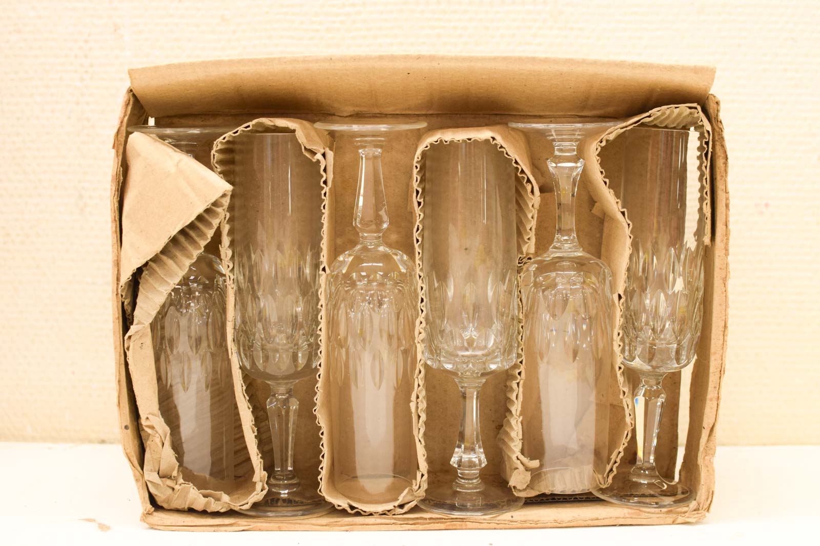 De glazen vertonen lichte krasjes en hebben een dofmate, wat wijst op regelmatig gebruik. Dit is normaal voor gebruikte glazen en beperkt de functionaliteit niet. De glazen zijn compleet aanwezig en intact, zonder barsten of scheuren.