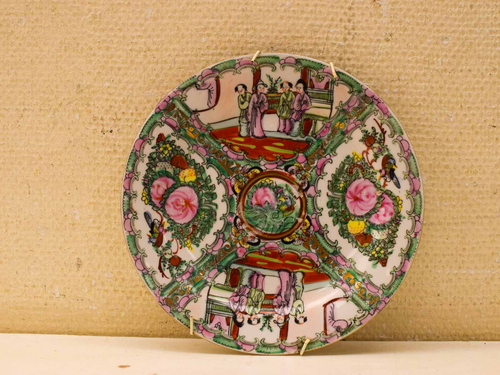 De borden verkeren in redelijke staat. Ze vertonen normale gebruikssporen die je bij tweedehandsservies mag verwachten. Er zijn geen grote beschadigingen of breuken. De goudkleurige rand is nog goed zichtbaar. Dit zijn borden waar je mee kunt eten en die hun werk doen, niet borden om achter glas te zetten.