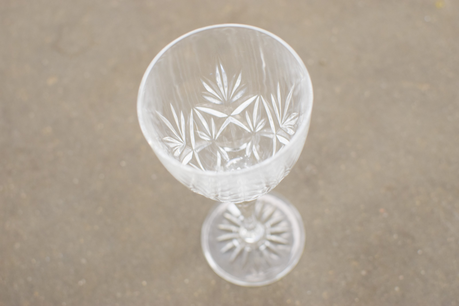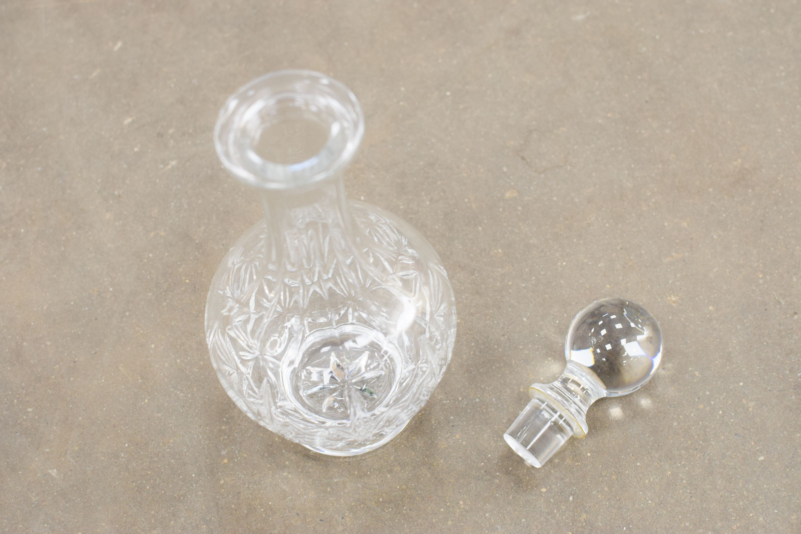 de karaf gemeten zonder deksel diameter bovenkant opening 6 cm hoog 24,5 cm de glazen gemeten diameter bovenkant opening 7 cm hoog 18 cm het glas is heel maar de glazen zijn wat dof