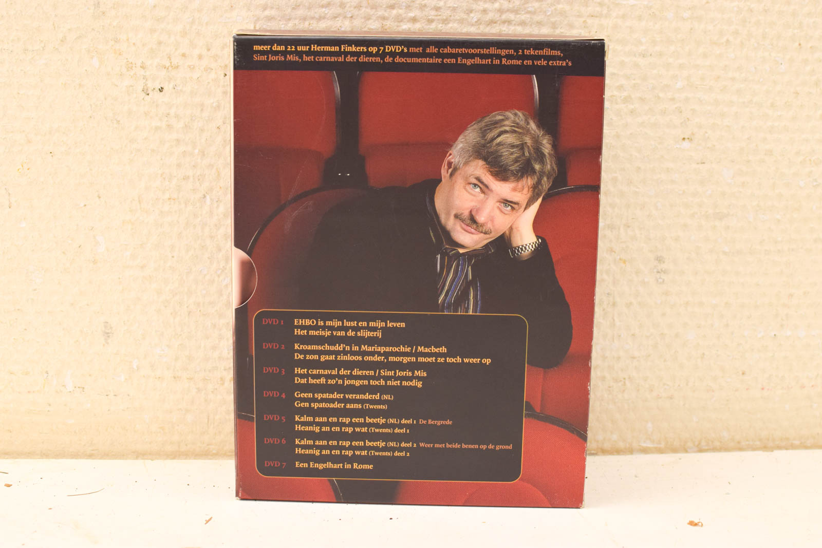 Dit is een complete Herman Finkers DVD box ’tot nu toe’ met alle zeven dvd’s. De verzameling bevat meer dan 32 uur Herman Finkers op dvd, met cabaretvoorstellingen, twee tekenfilms, documentaires en extra’s.