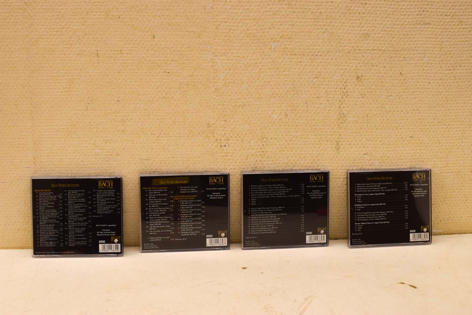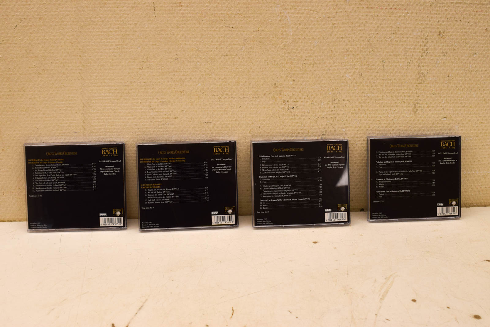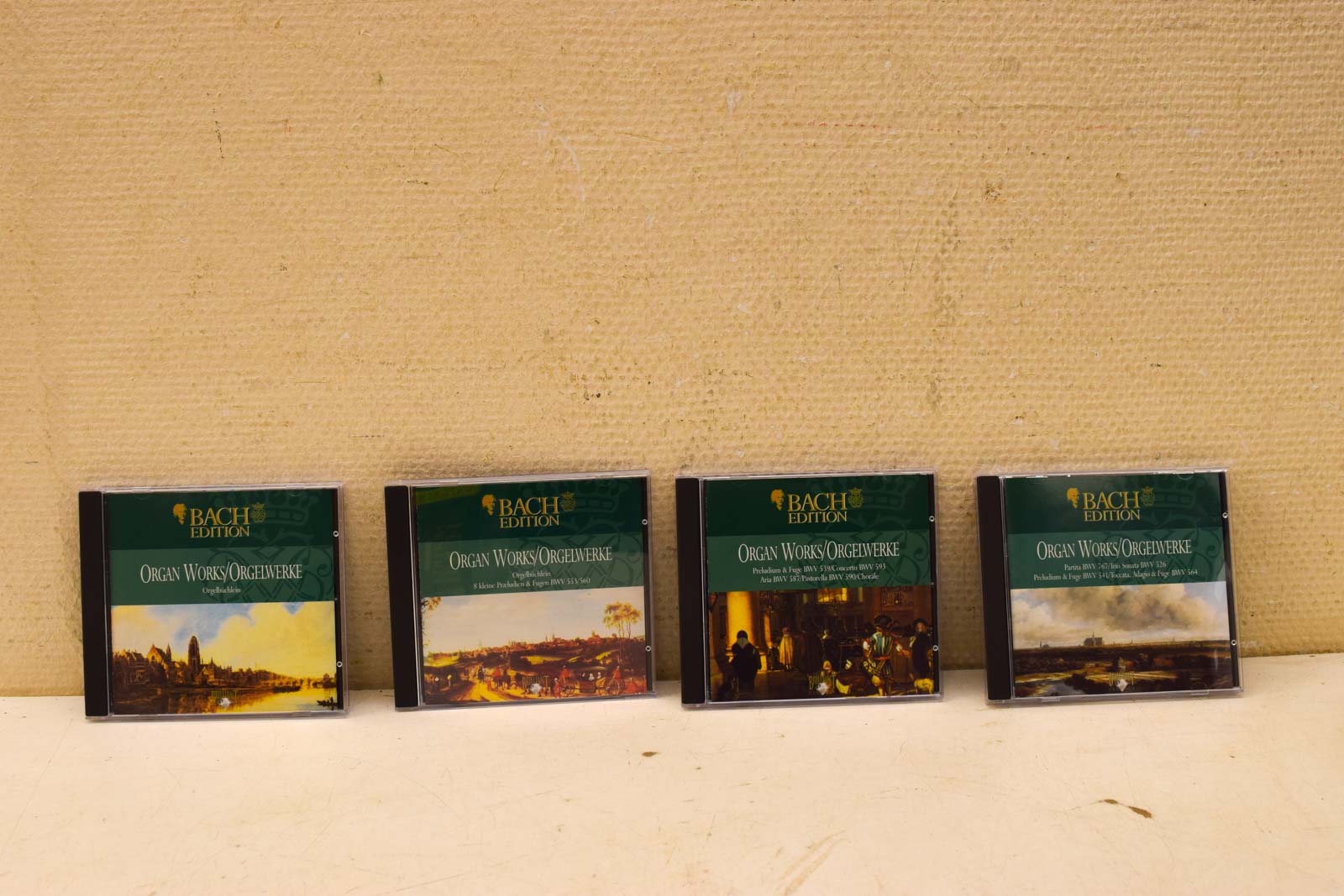 Elke CD in deze set is afzonderlijk verpakt in een jewelcase met unieke schilderijen op de voorkant, voorzien van duidelijke tracklijsten op de achterzijde, inclusief BWV-nummers en speelduur.