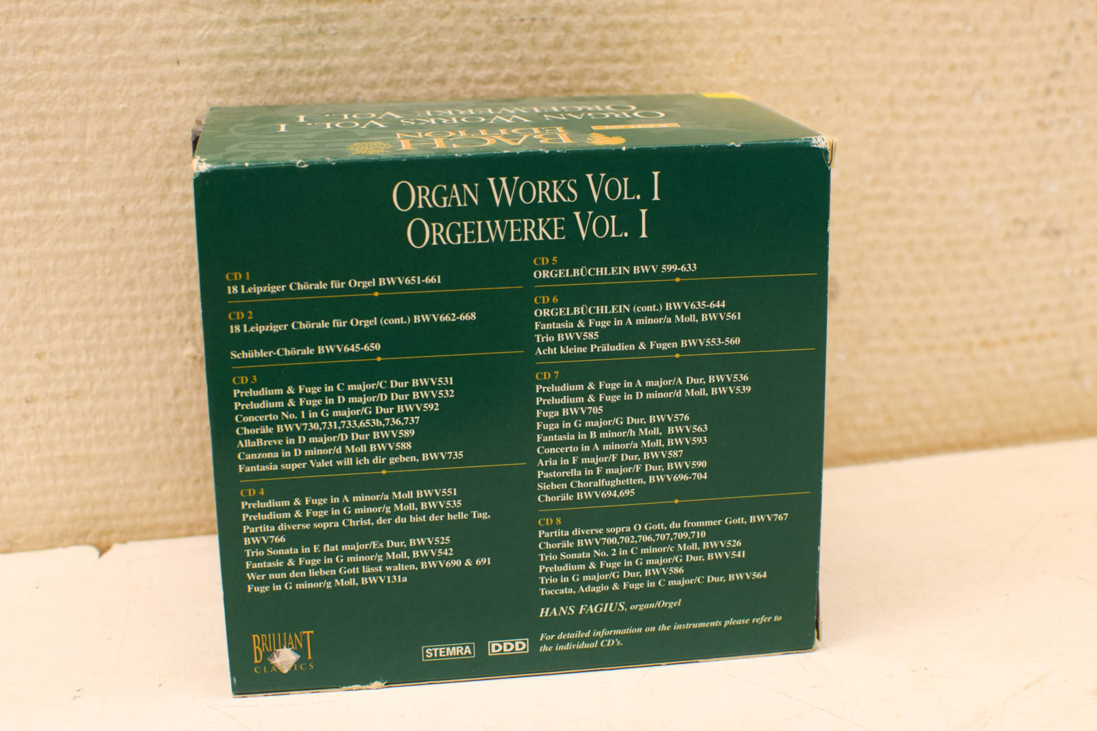 De Bach Edition – Organ Works / Orgelwerke Vol. I (Volume 6) is een prachtige 8-CD boxset van Brilliant Classics, waarin de indrukwekkende orgelwerken van Johann Sebastian Bach centraal staan.