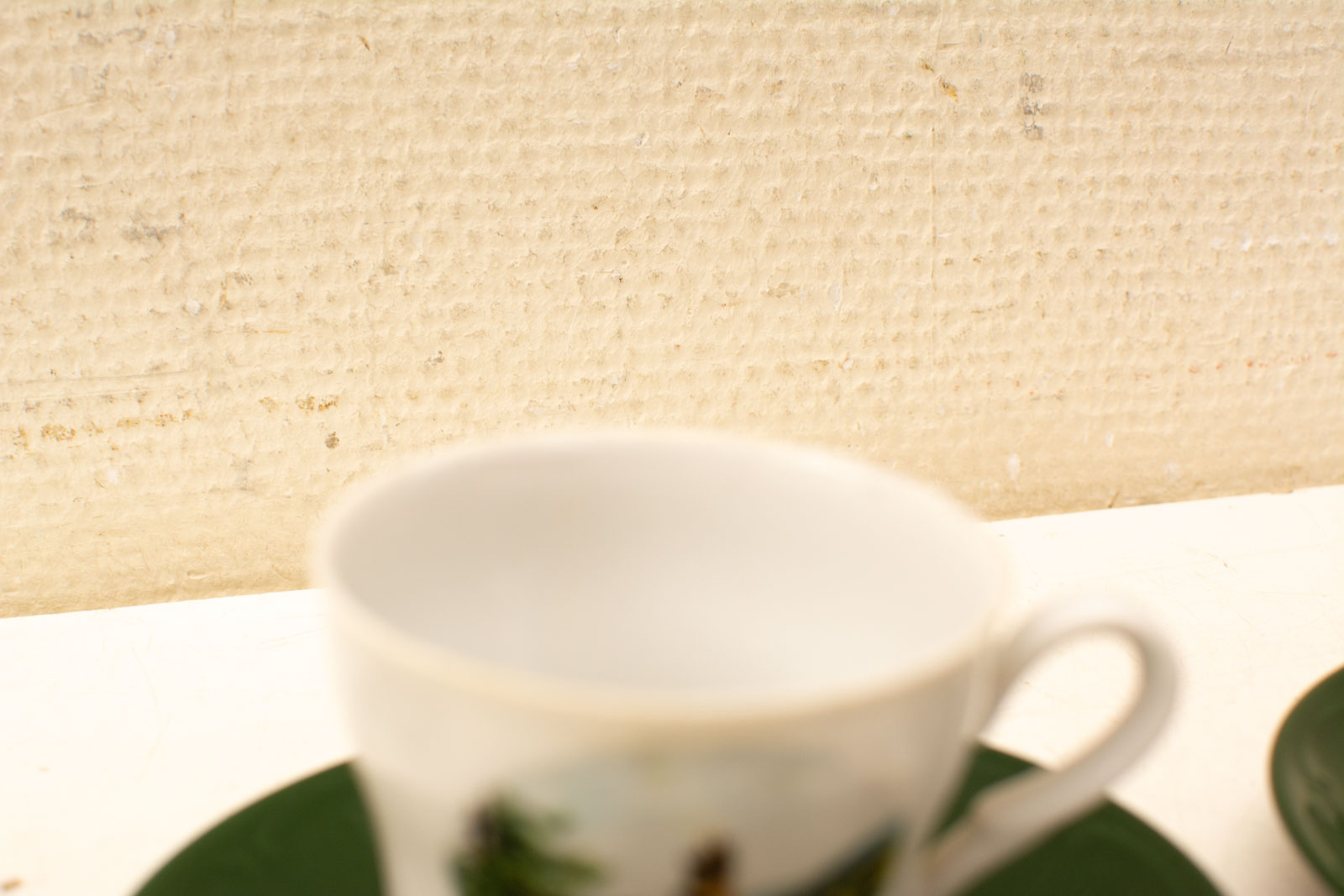 diameter bovenkant van het kopje 7,5 cm hoog 6 cm diameter van het schoteltje 13,5 cm de bovenkant van het kopje heeft slijtage /gebruikssporen het servies heeft wat krasjes