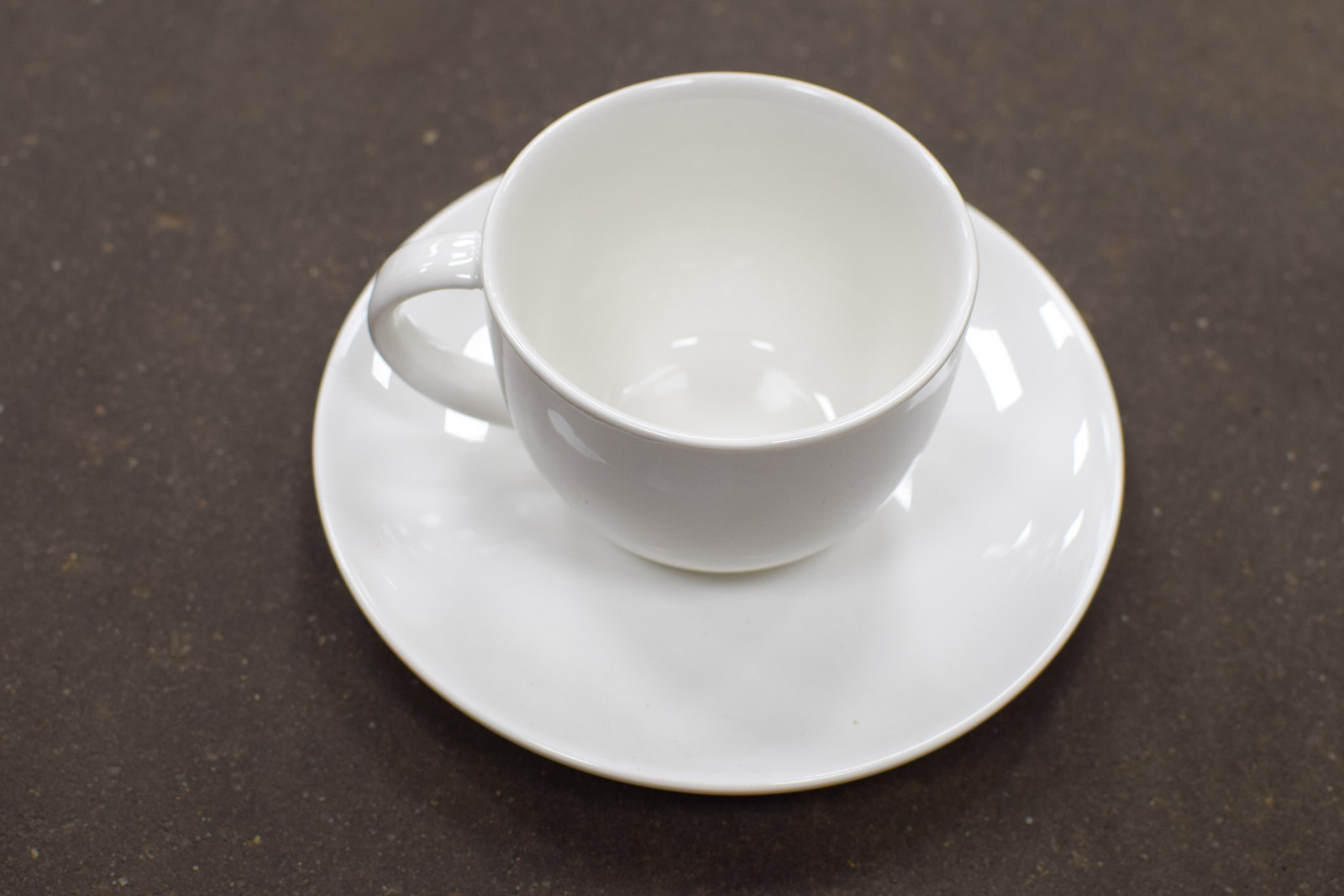 het kopje gemeten diameter bovenkant opening 9 cm hoog 6,5 cm diameter van het schaaltje 16 cm