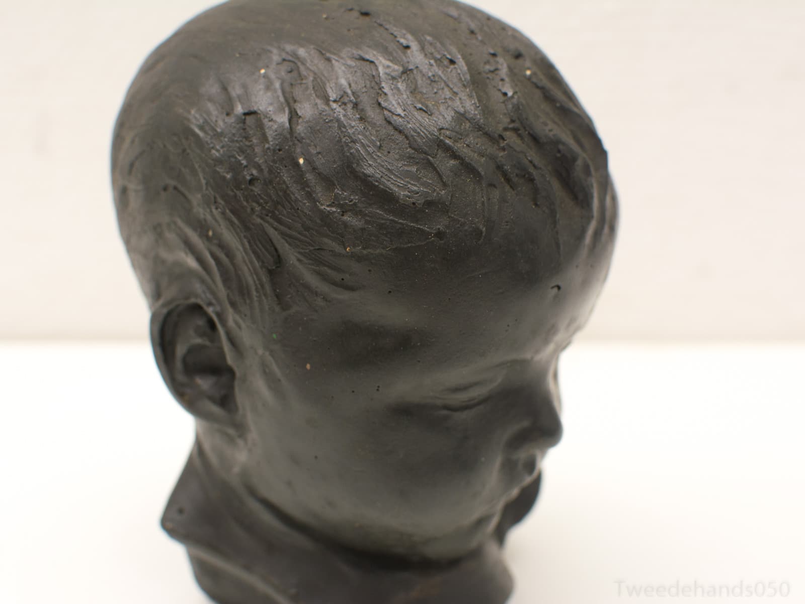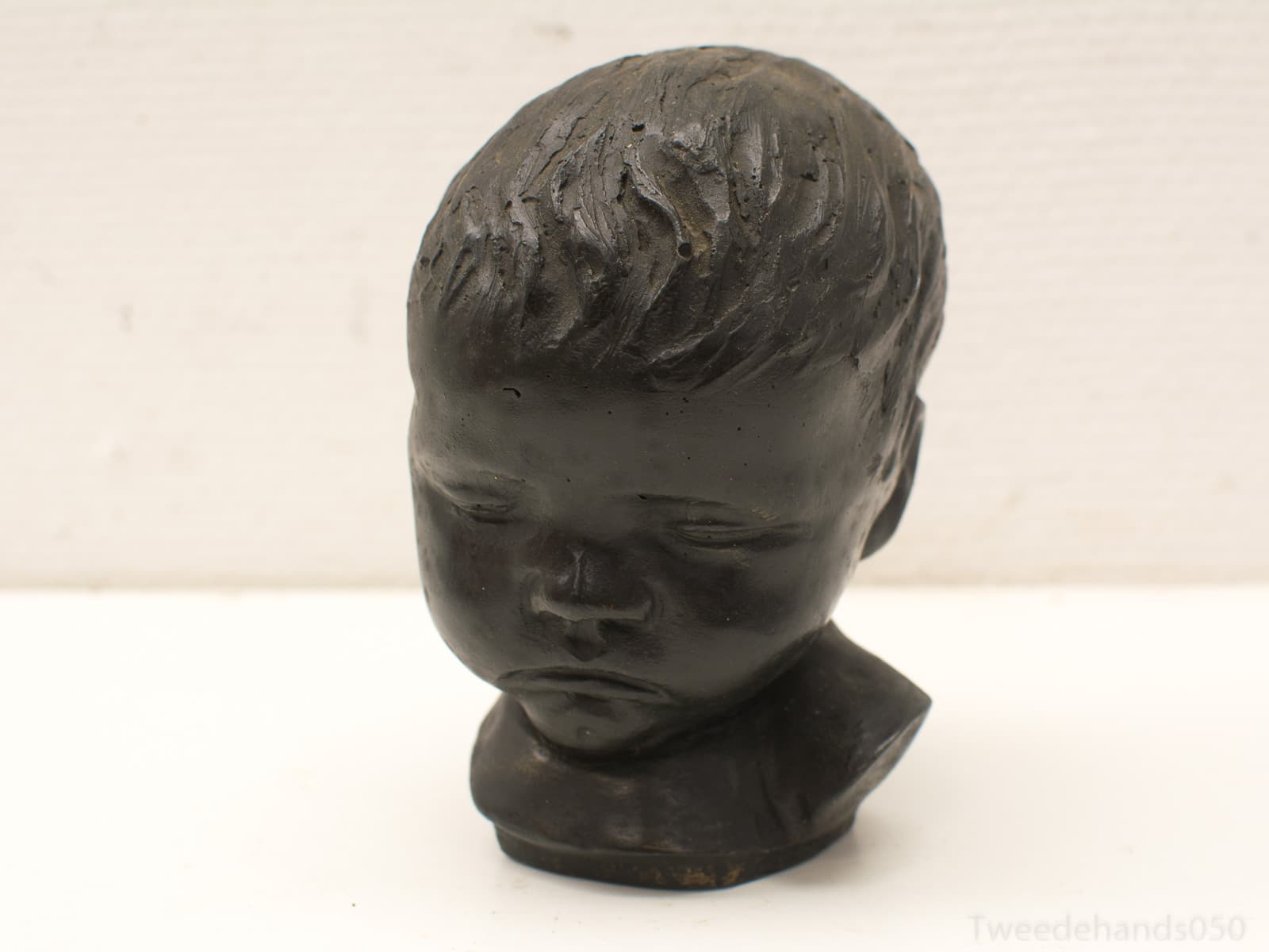 Een zwart beeld van een baby hoofd. Leuk als cadeau te geven op ee kraamvisite.