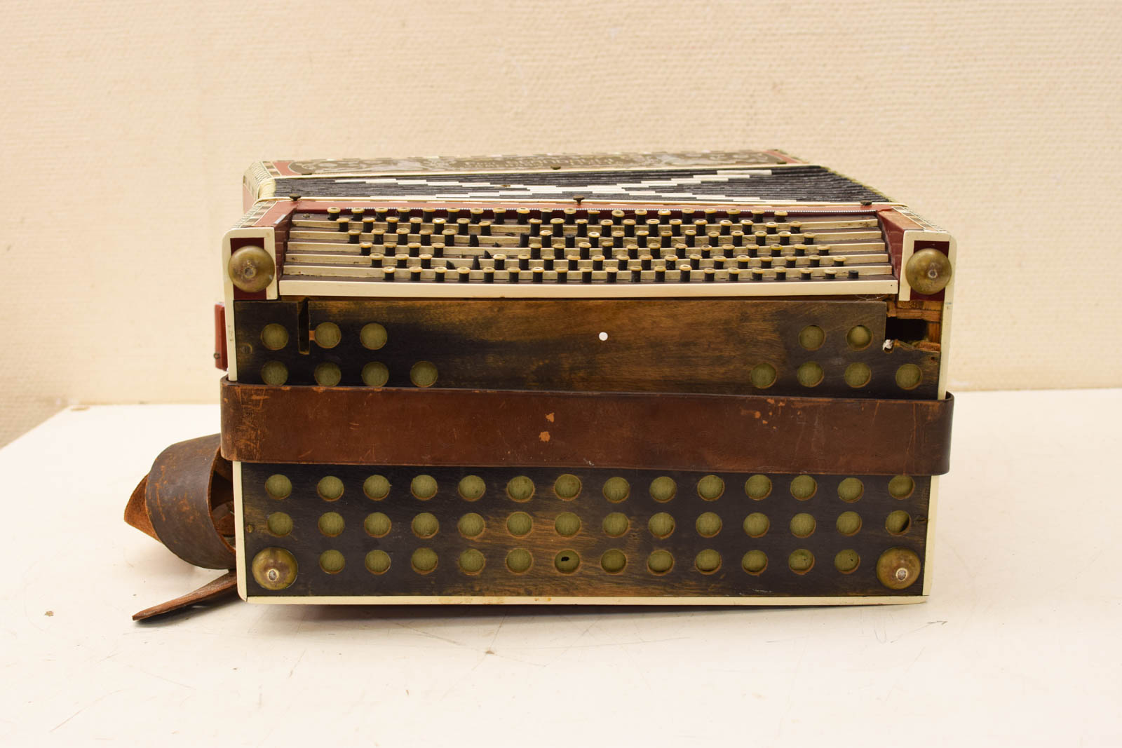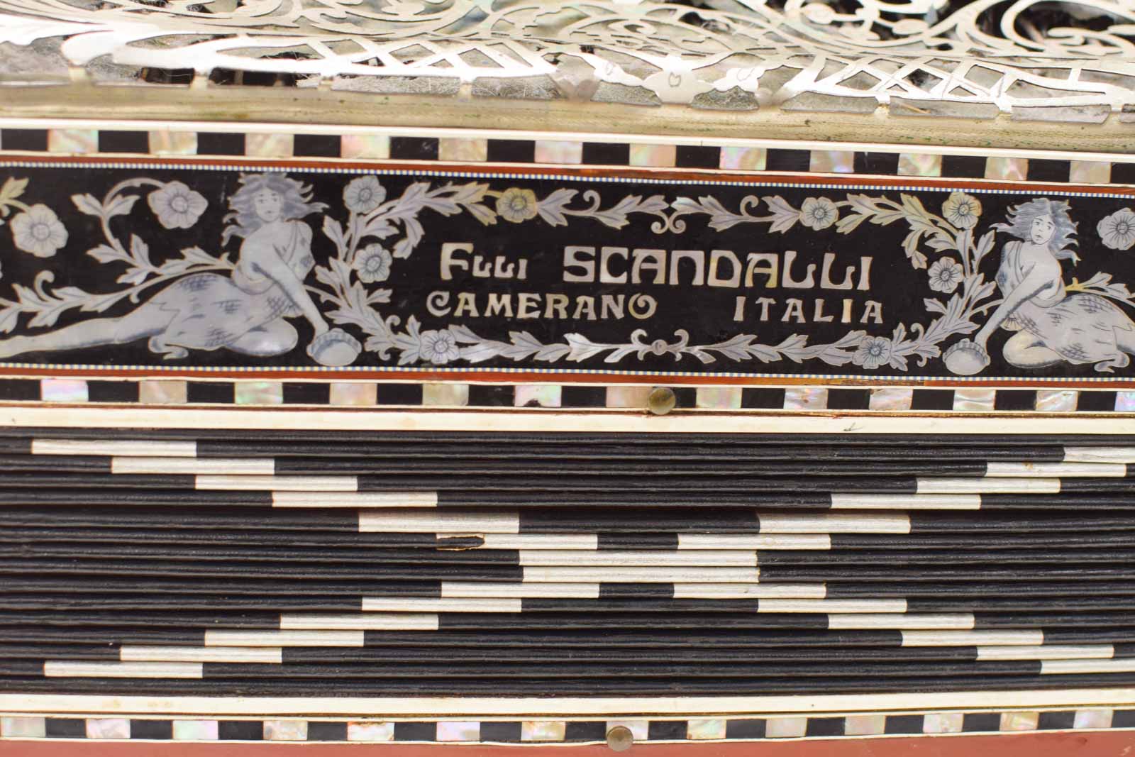 er staat op Fuli Scandalli camerano italiƫ is gebruikt heeft gebruikssporen de onderkant heeft een gat diepte 21,5 cm hoog 40
