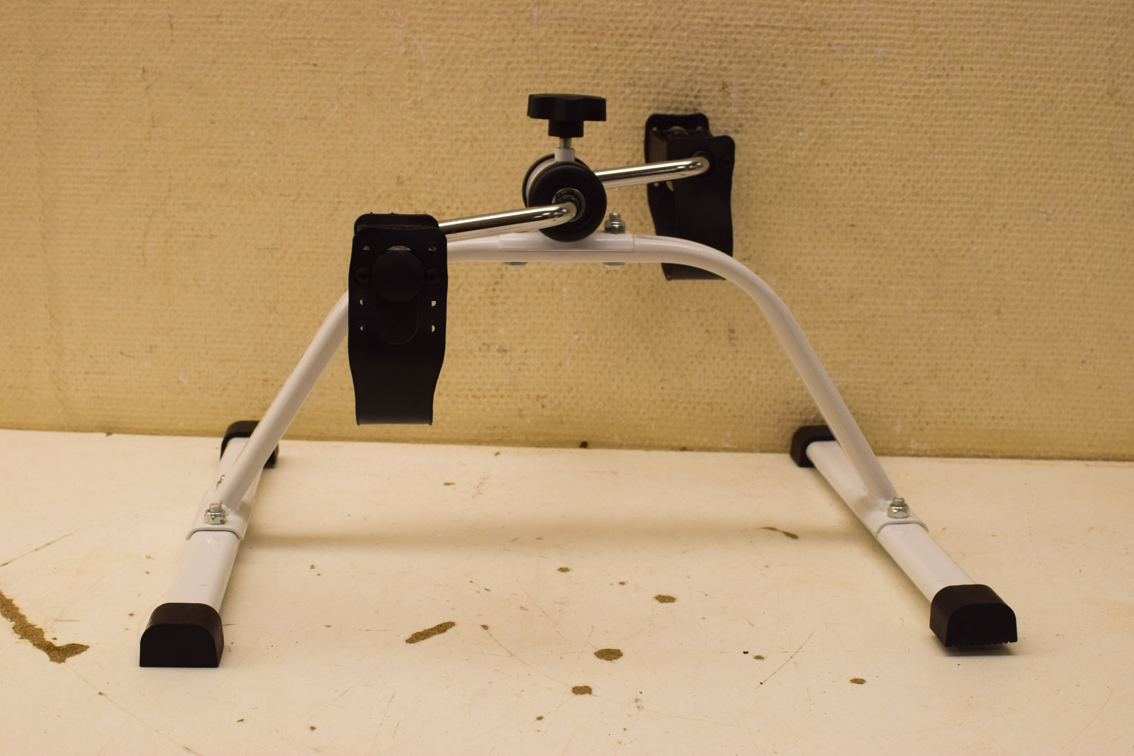 De stoelfiets beschikt over ergonomische voetpedalen met beugels en een verstelbare weerstandsknop bovenop het frame. Dit geeft je controle over de trainingsintensiteit. De basis met rubberen voetjes zorgt voor stabiliteit op je vloer. De wiel-mechanica werkt soepel, ook al is dit geen moderne electronic hometrainer maar een simpel magnetisch of wrijvingsmodel.