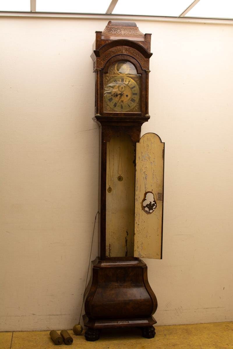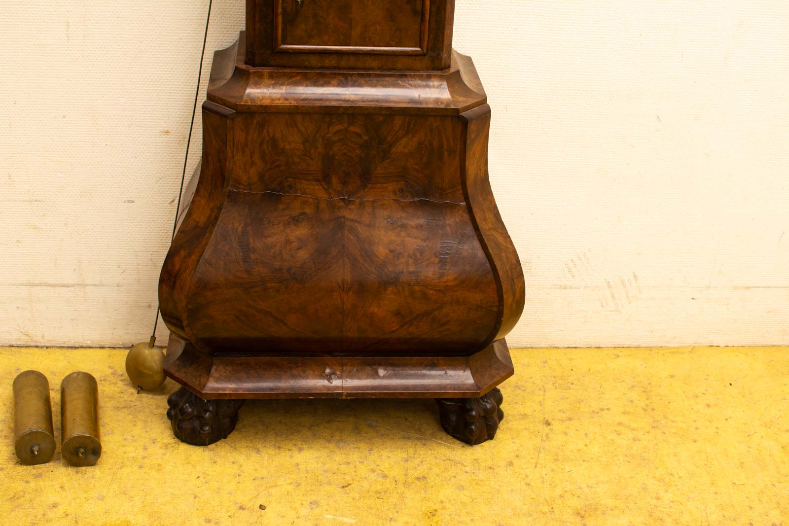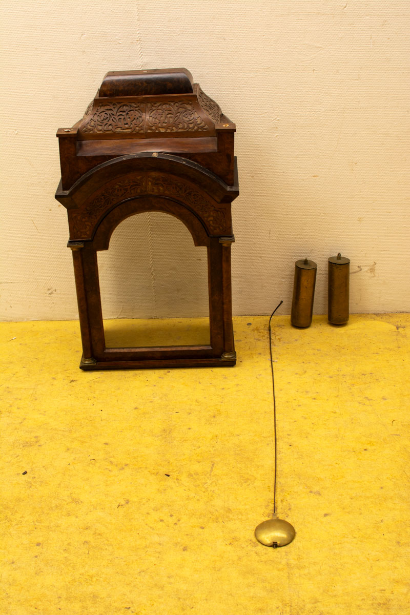 de klok heeft hele lichte slijtage aan het hout de klok is loop of sloop is geen sleutel bij de klok