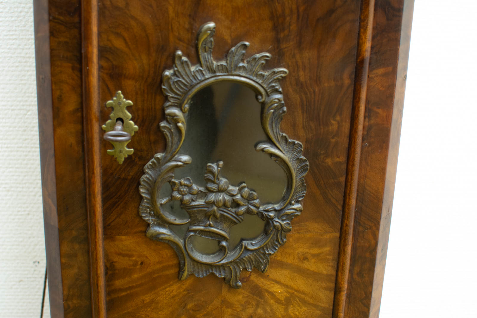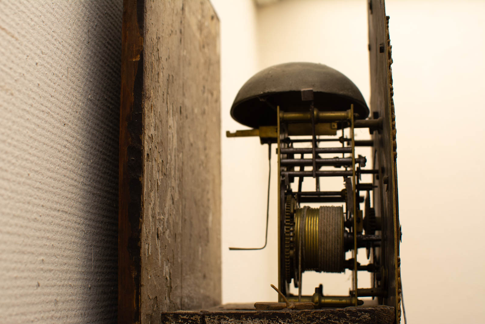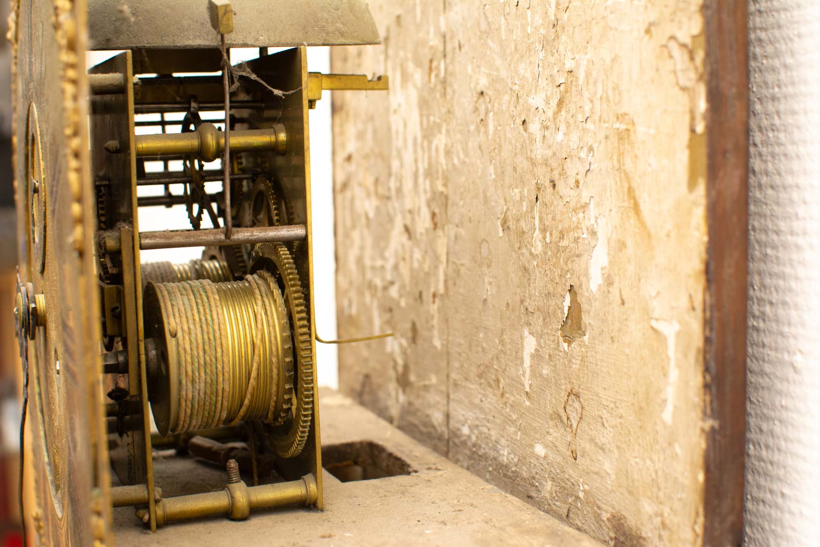 de klok heeft hele lichte slijtage aan het hout de klok is loop of sloop is geen sleutel bij de klok