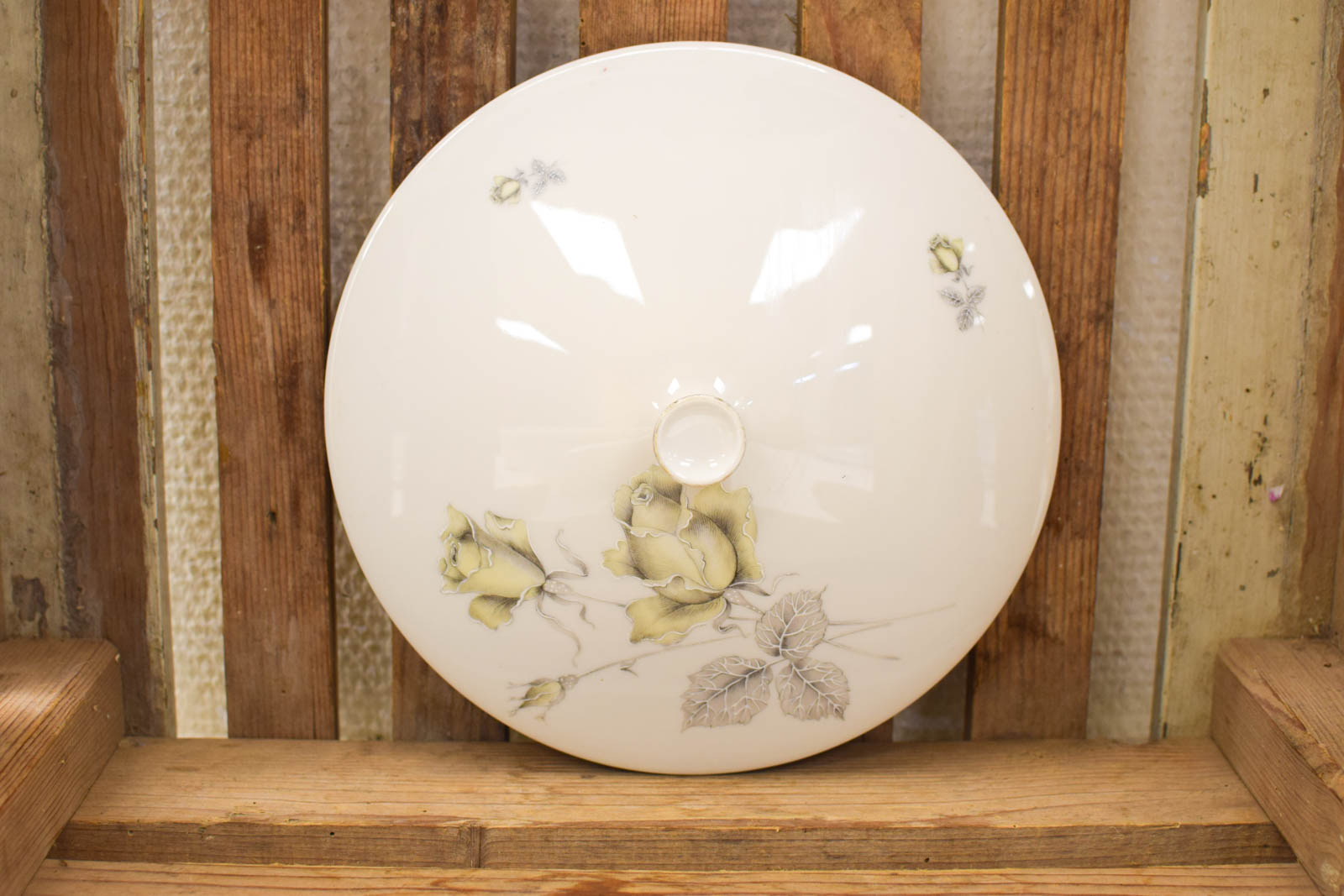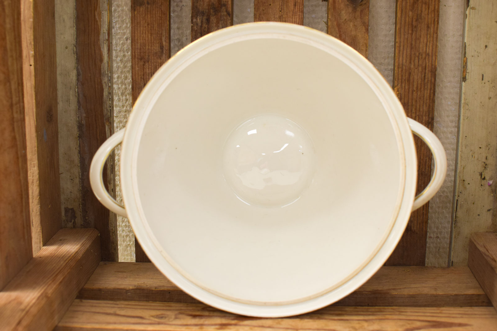 heeft lichte krasjes diameter van de schaal 21,5 cm gemeten zonder deksel hoog 10 cm