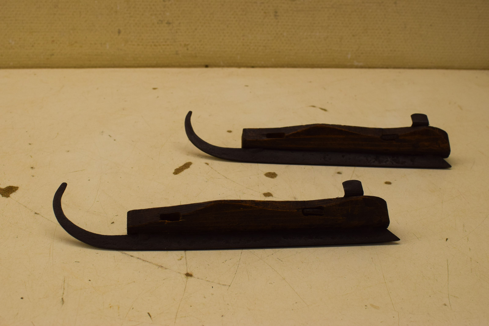 heeft roest en het hout heeft gebruikssporen de bandjes ontbreken er staat geen merkje