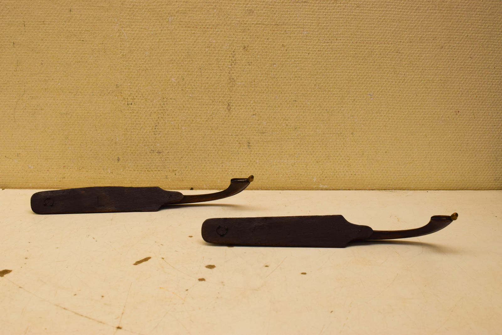 zijn geen riempjes bij het hout heeft gebruik sporen roest er staat geen merkje in hoog 9,5 cm